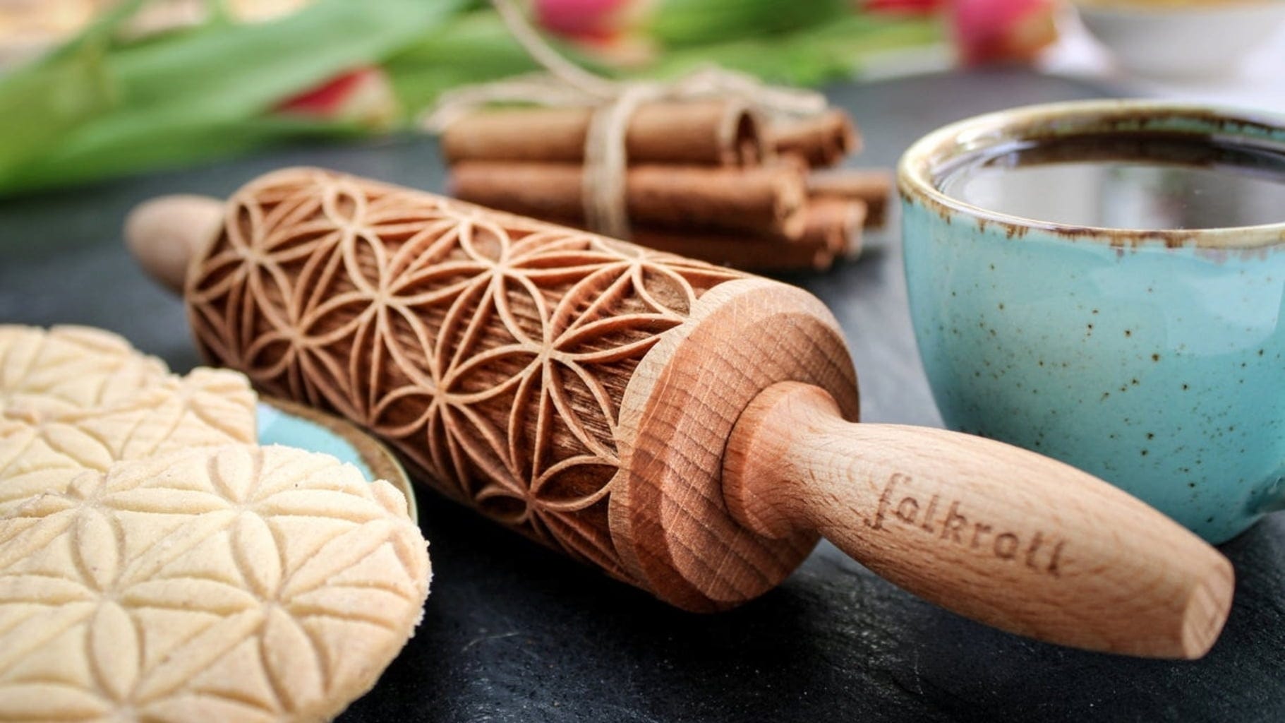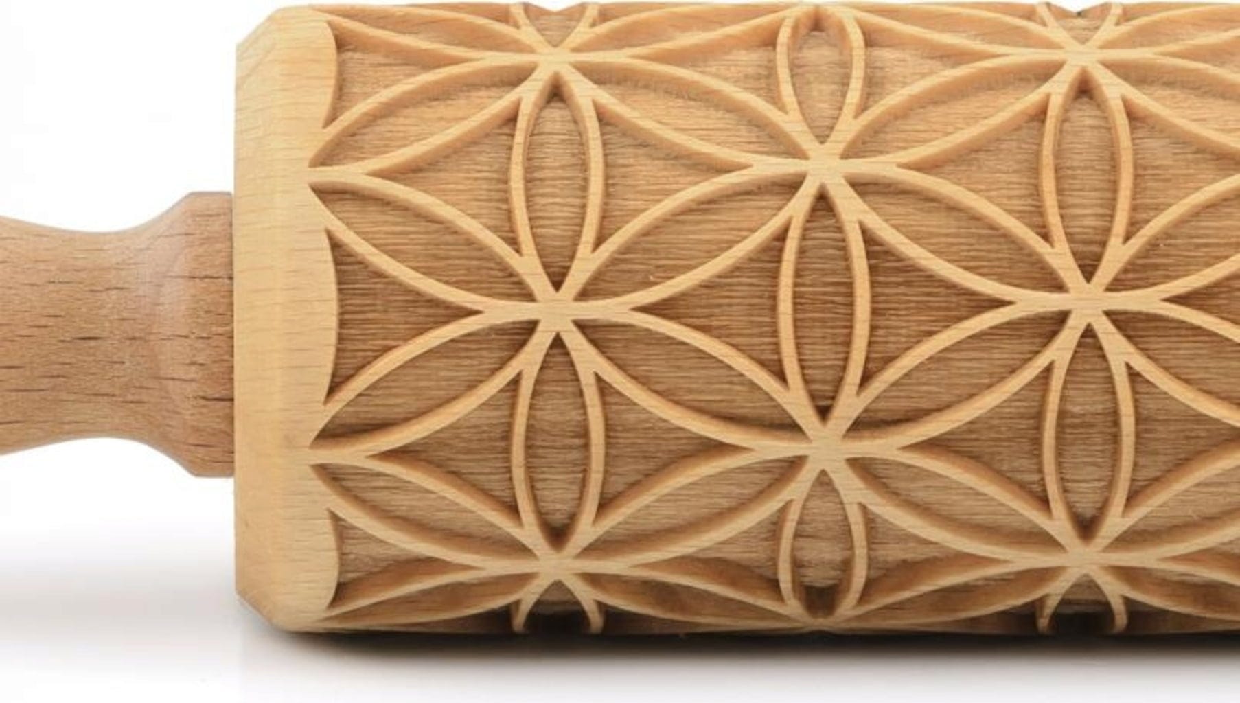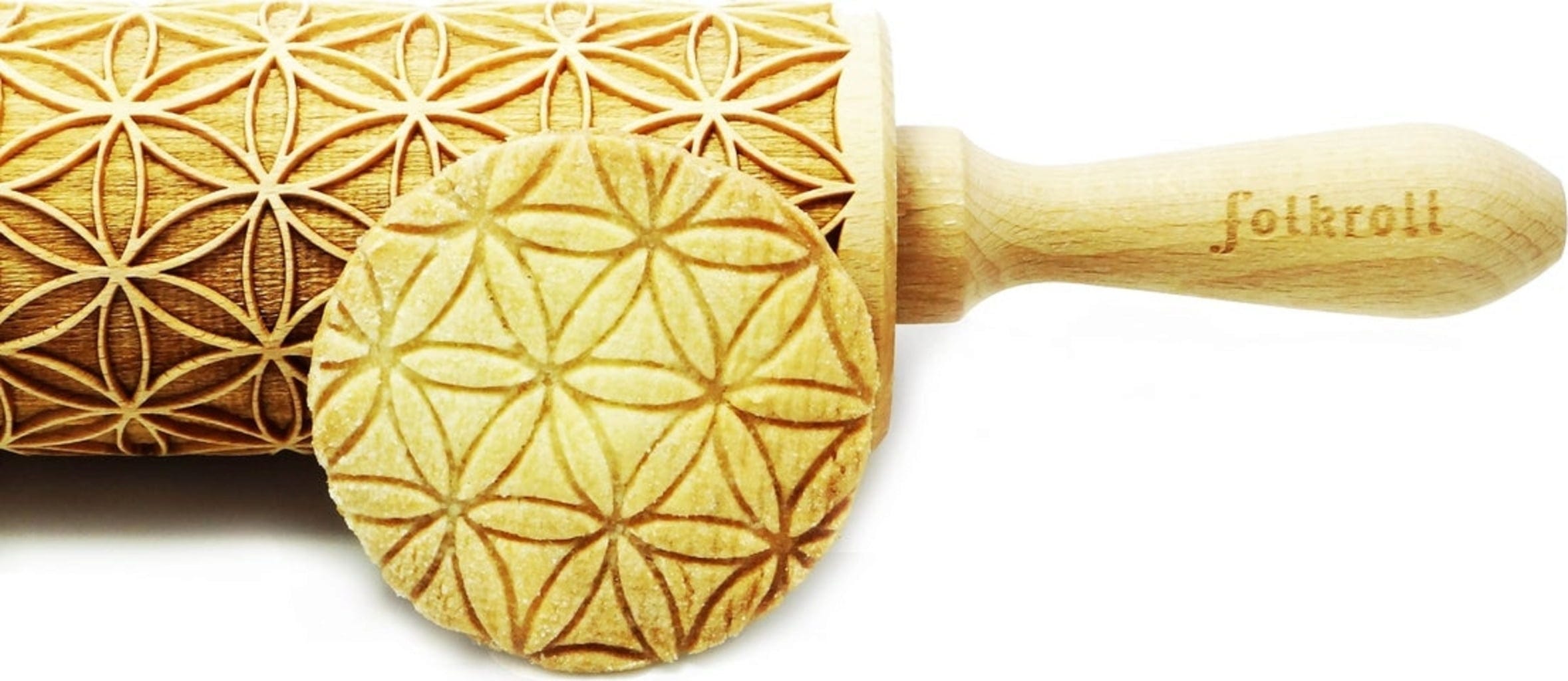 Ten pięknie wykonany wałek z motywem kwiatu życia w mgnieniu oka zamienia rozwałkowane ciasto w pięknie udekorowane ciasta i ciasteczka. Zastosowanie jest bardzo proste: rozwałkuj ciasto, a następnie pokrój lub wytnij wybrany przez Ciebie kształt, upiecz, gotowe!
