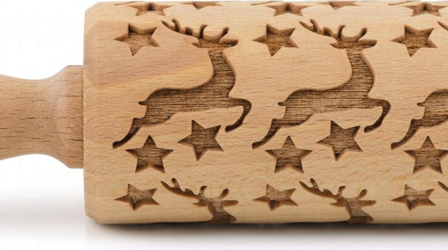 Ten pięknie wykonany wałek ze świątecznym wzorem renifera i gwiazd w mgnieniu oka zamienia rozwałkowane ciasto w pięknie, udekorowane ciasta i ciasteczka. Zastosowanie jest bardzo proste: rozwałkuj ciasto, a następnie pokrój lub wytnij wybrany przez Ciebie kształt, upiecz, gotowe!
