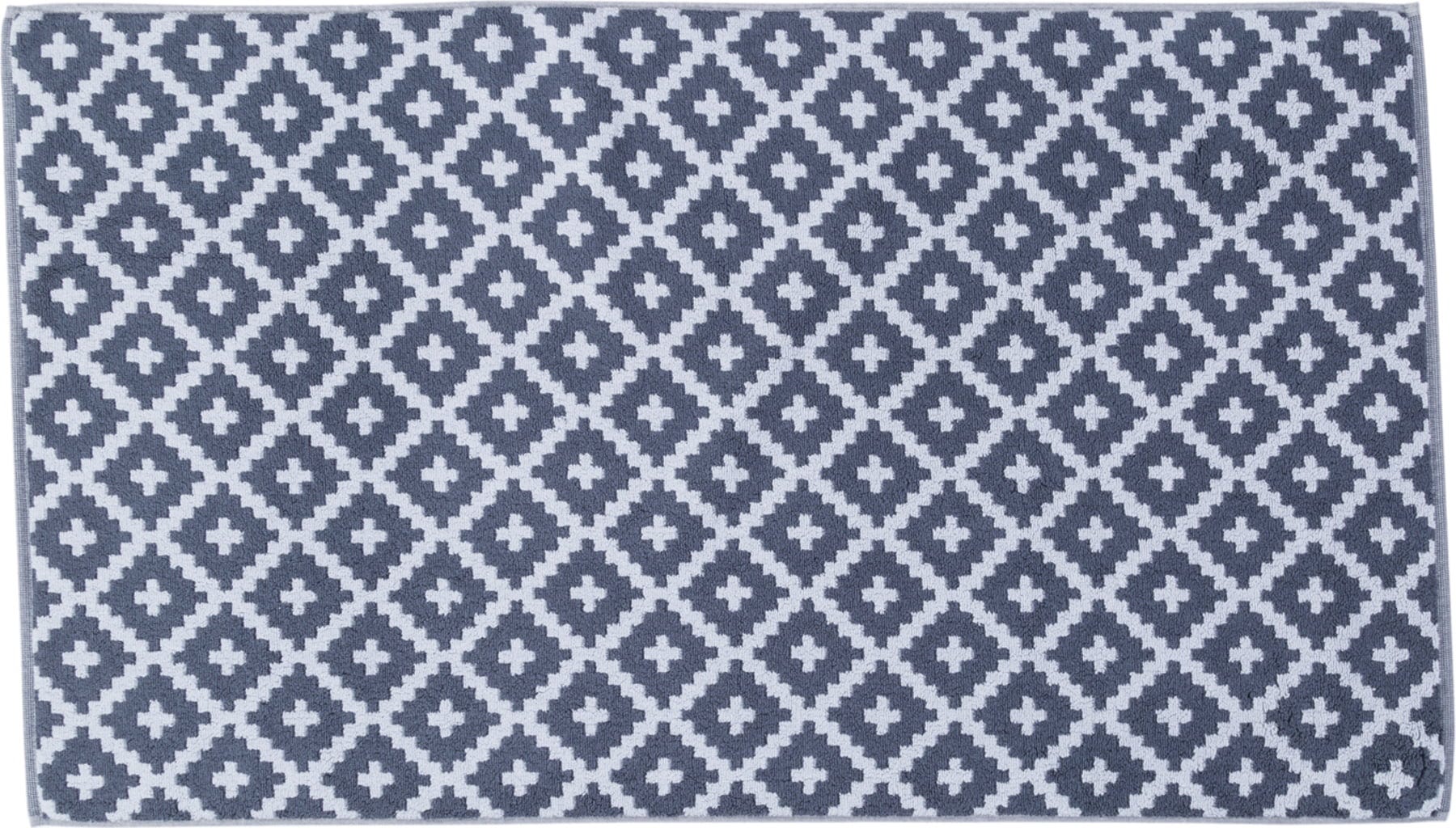 Upiększ swoją oazę dobrego samopoczucia dzięki przytulnemu dywanowi łazienkowemu w skandynawskim stylu! Graficzny wzór w romby zapewnia dużą różnorodność. Wykonany w 100% z bawełny.