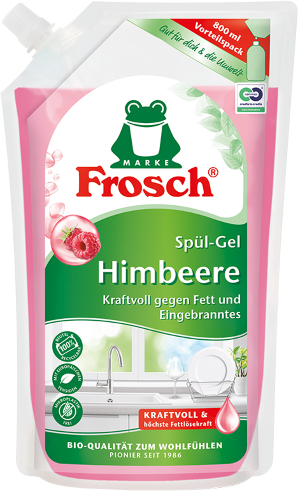 Frosch Malinowy żel do mycia naczyń, Opakowanie uzupełniające 800 ml
