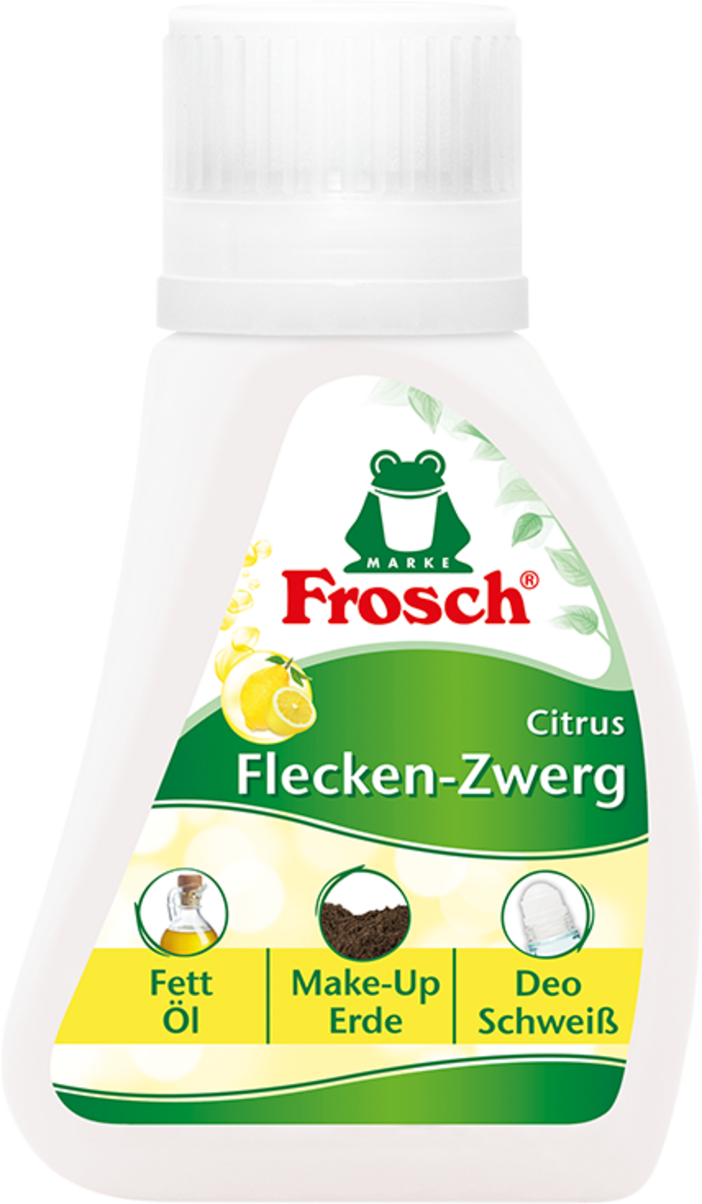 Środek do usuwania plam, cytrusowy firmy Frosch usuwa tłuste i zawierające pigment plamy z prania białego i kolorowego!