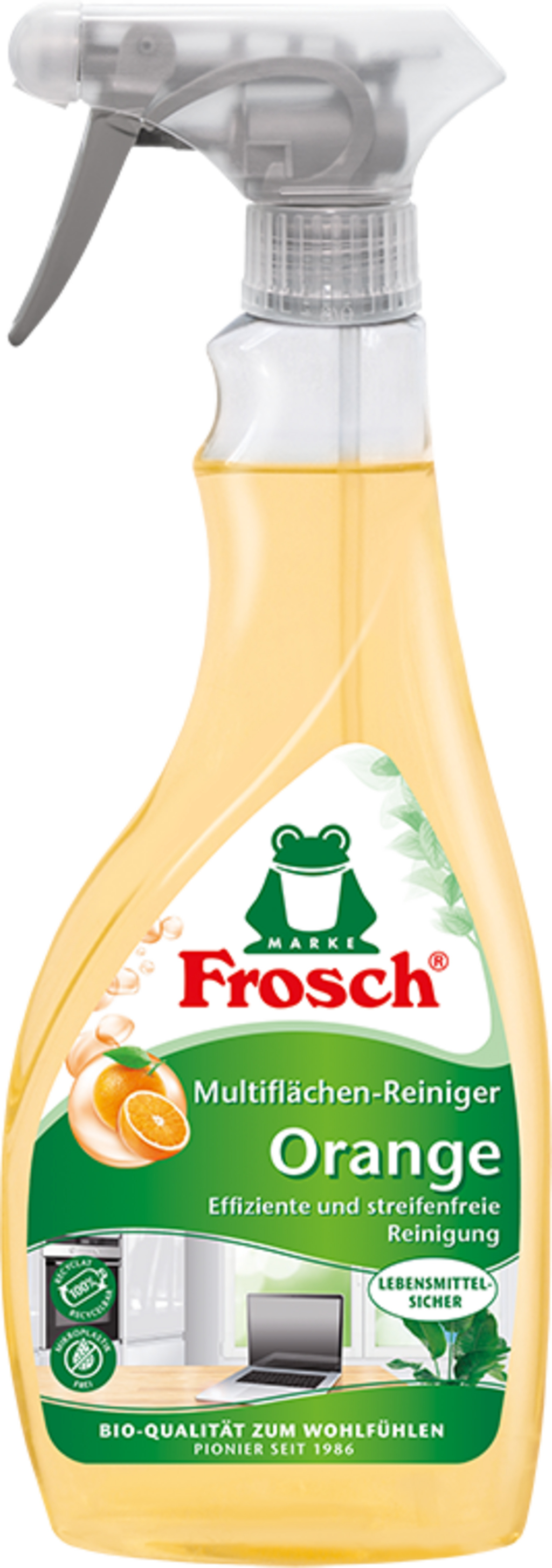 Uniwersalny środek czyszczący firmy Frosch zapewnia czystość bez smug na powierzchniach i emanuje świeżym pomarańczowym zapachem!
