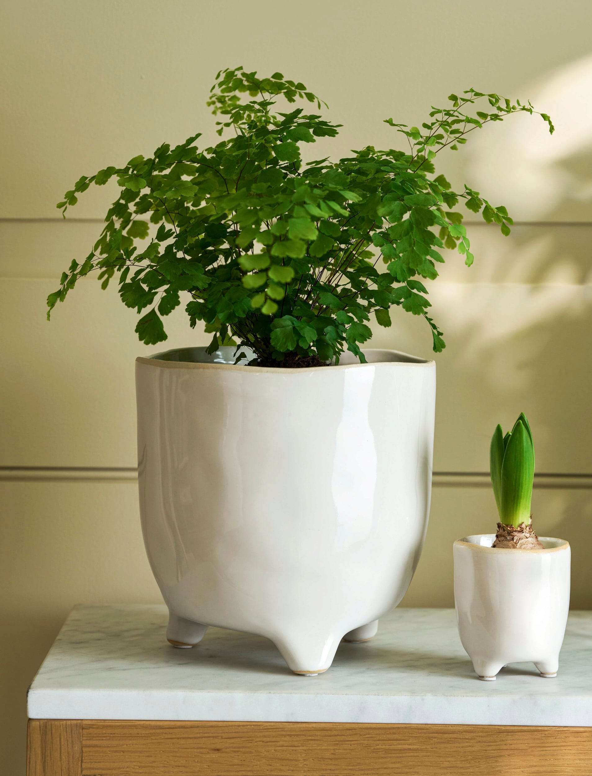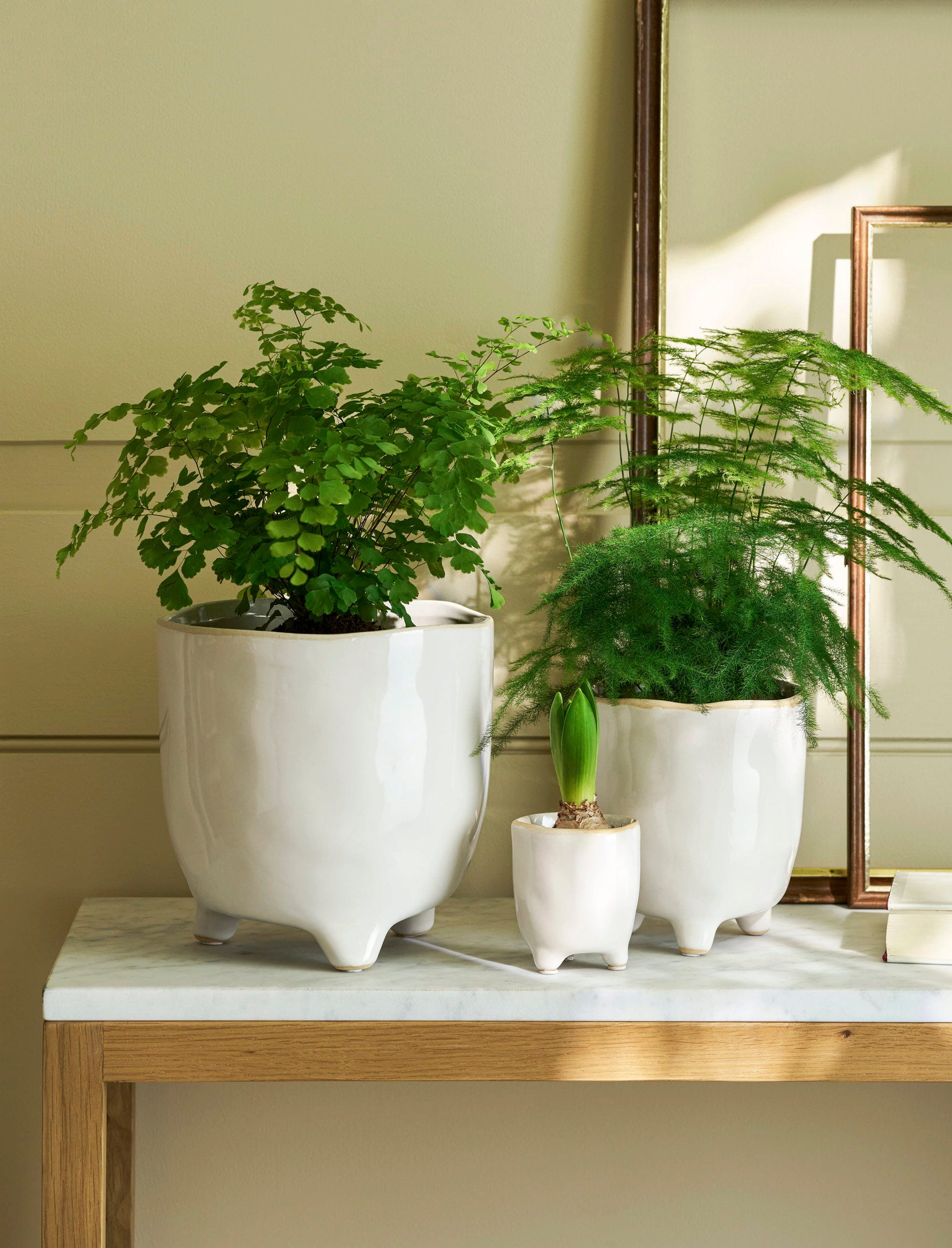- Stylowo eksponuje rośliny doniczkowe