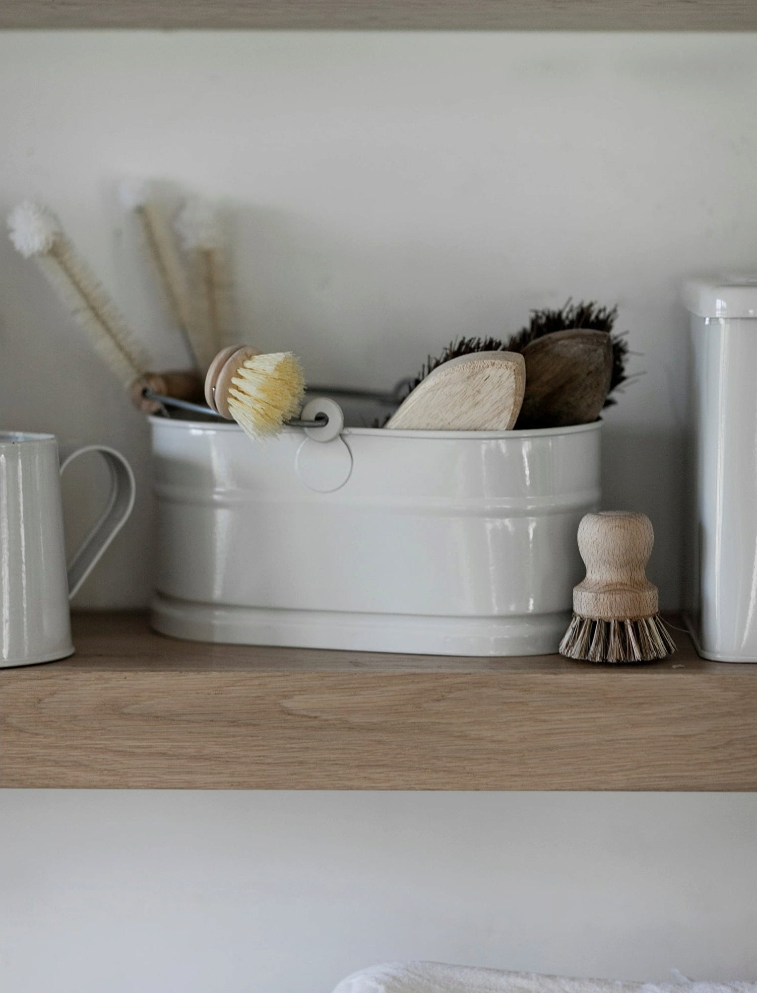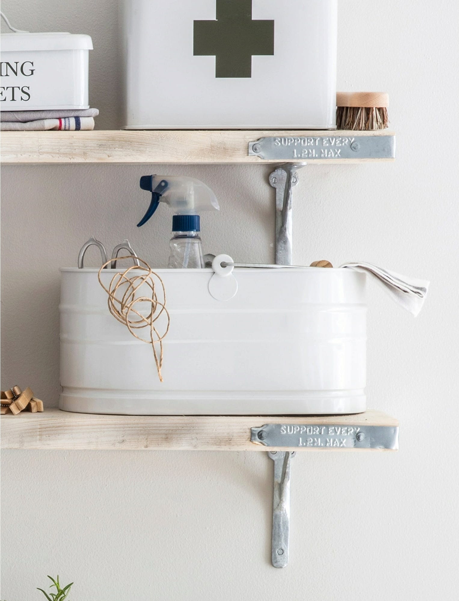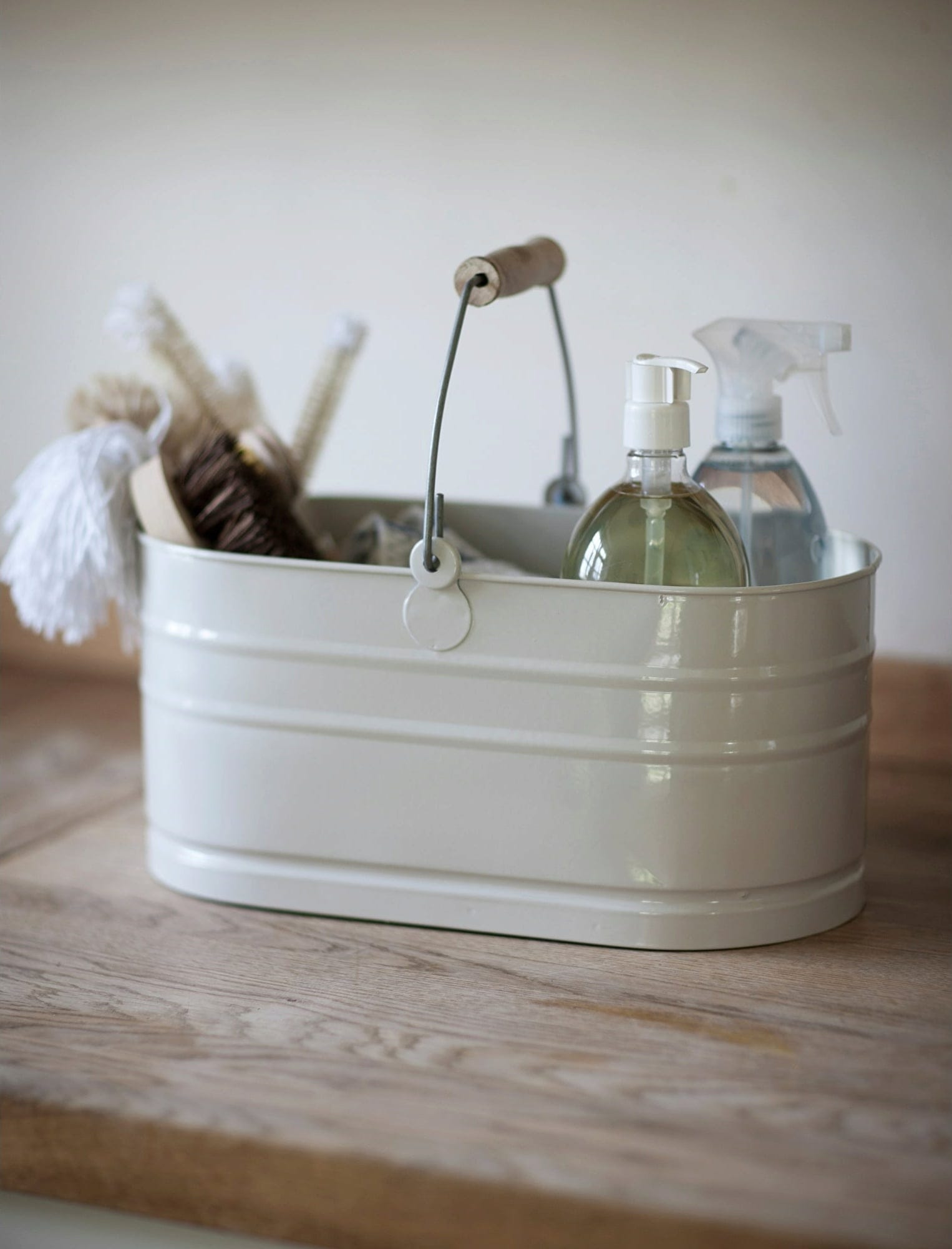 Ten elegancki pojemnik bezpiecznie i stylowo przechowa wszystkie Twoje domowe rzeczy. Niezależnie od tego, czy w kuchni na gąbki i inne środki czystości, w łazience na środki czystości, czy w ogrodzie na narzędzia, to wspaniałe pudełko pomieści niemal wszystko. Wykonane z wysokiej jakości, malowanego proszkowo metalu, jest również wystarczająco wytrzymałe, aby sprostać różnorodnym potrzebom. Praktyczny metalowy uchwyt z drewnianym uchwytem ułatwia przenoszenie z pomieszczenia do pomieszczenia, a nawet do ogrodu, dzięki czemu wszystkie niezbędne rzeczy zawsze masz pod ręką.