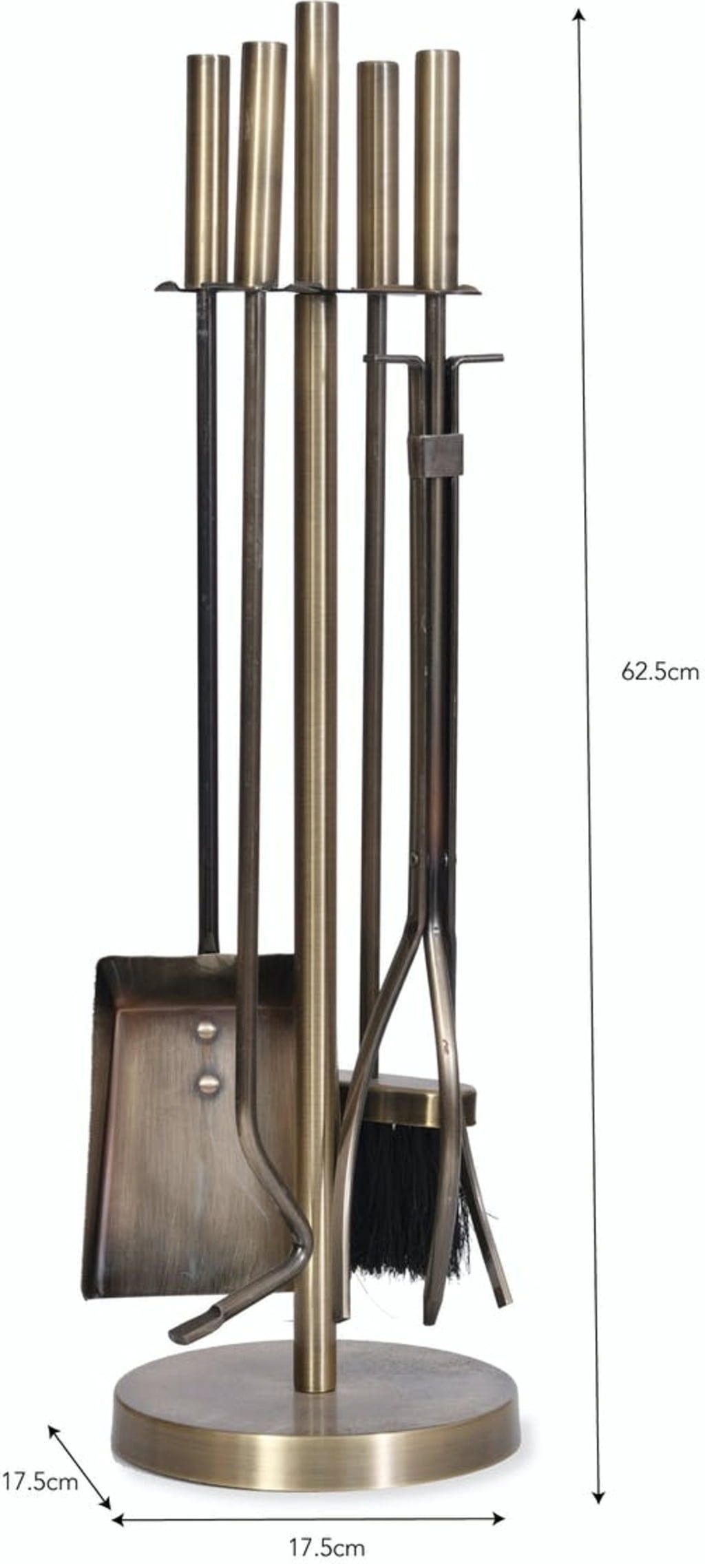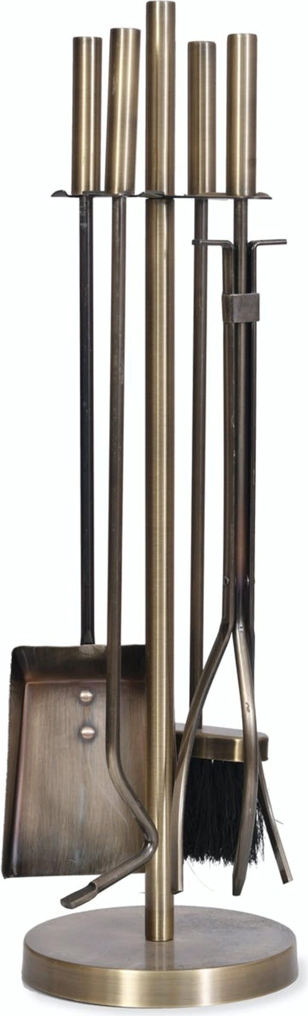 Zawiera stojak, szczotkę, łopatę, szczypce i pogrzebacz