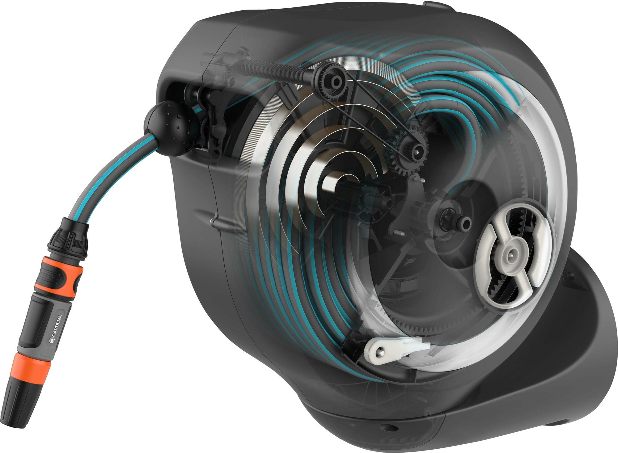 - Łatwe ściąganie z blokadą oraz bezpieczne i niezawodne zwijanie dzięki RollControl i zintegrowanemu prowadzeniu węża