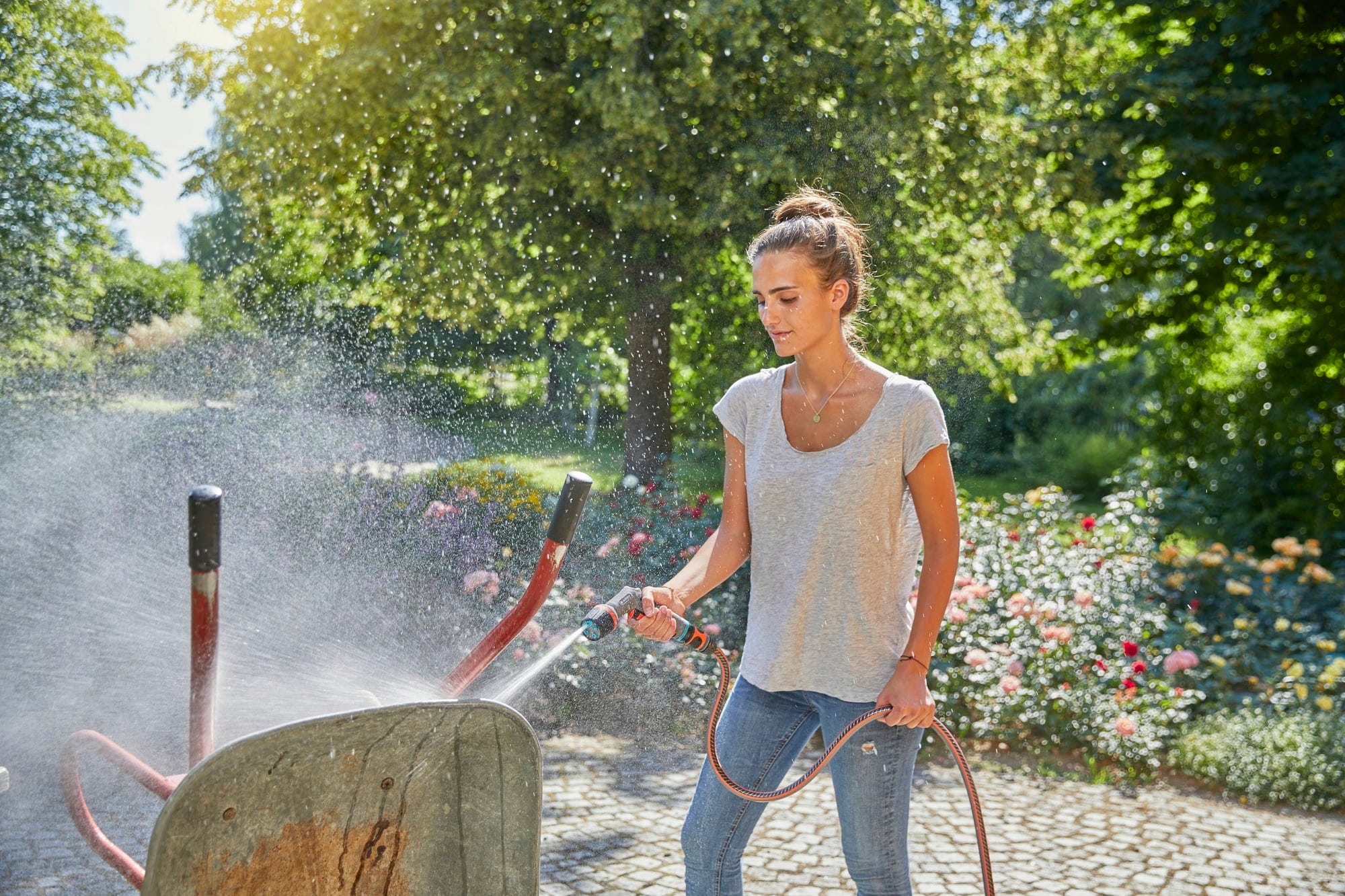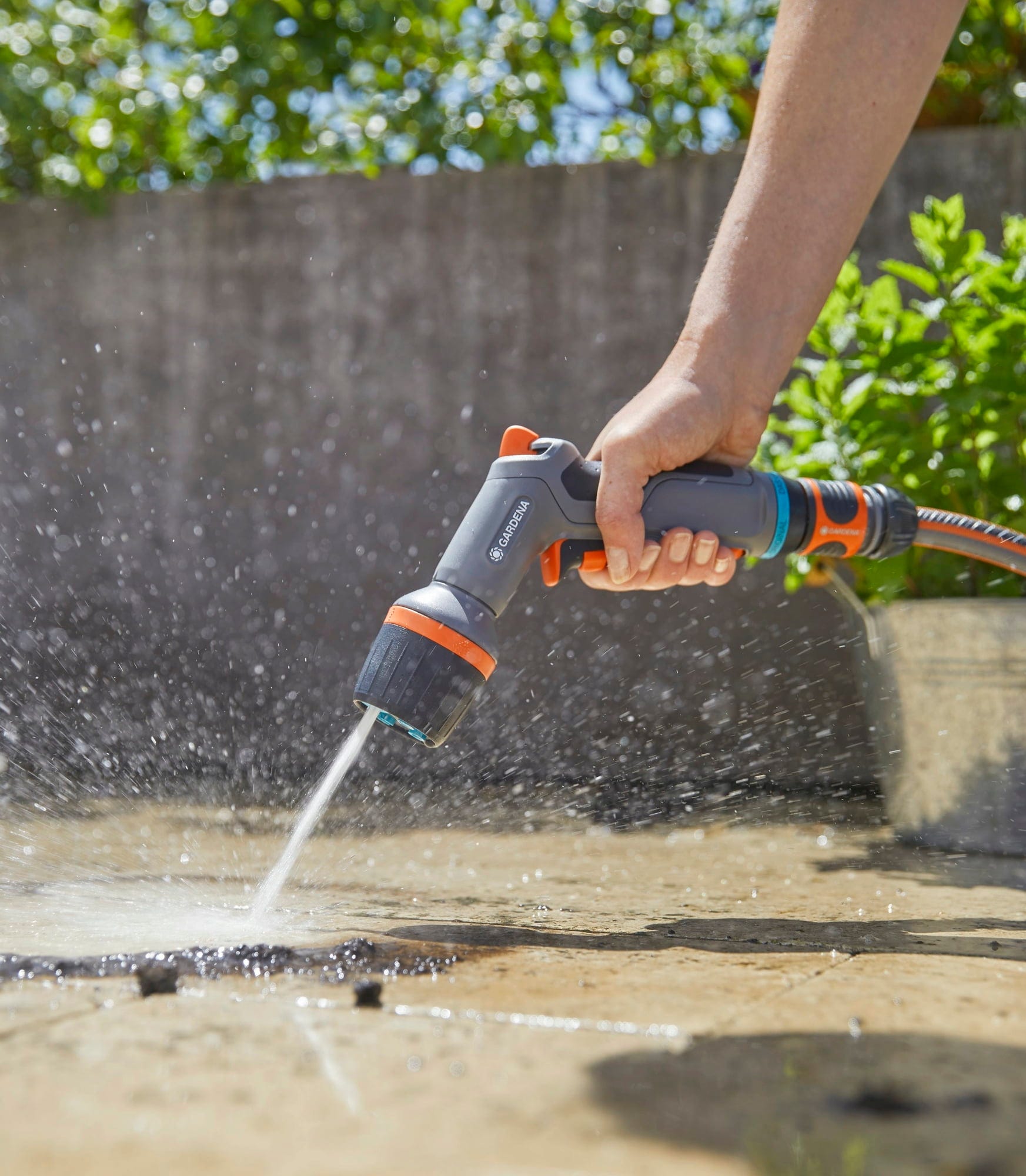 Dzięki temu innowacyjnemu spryskiwaczowi można nie tylko czyścić wyjątkowo wydajnie, ale także w sposób wyjątkowo przyjazny dla środowiska. Pozwala on zaoszczędzić do 40% wody w porównaniu z konwencjonalną dyszą Gardena. Oscylujący strumień wody czyści szczególnie dokładnie, sprawiając radość zarówno ludziom, jak i środowisku.