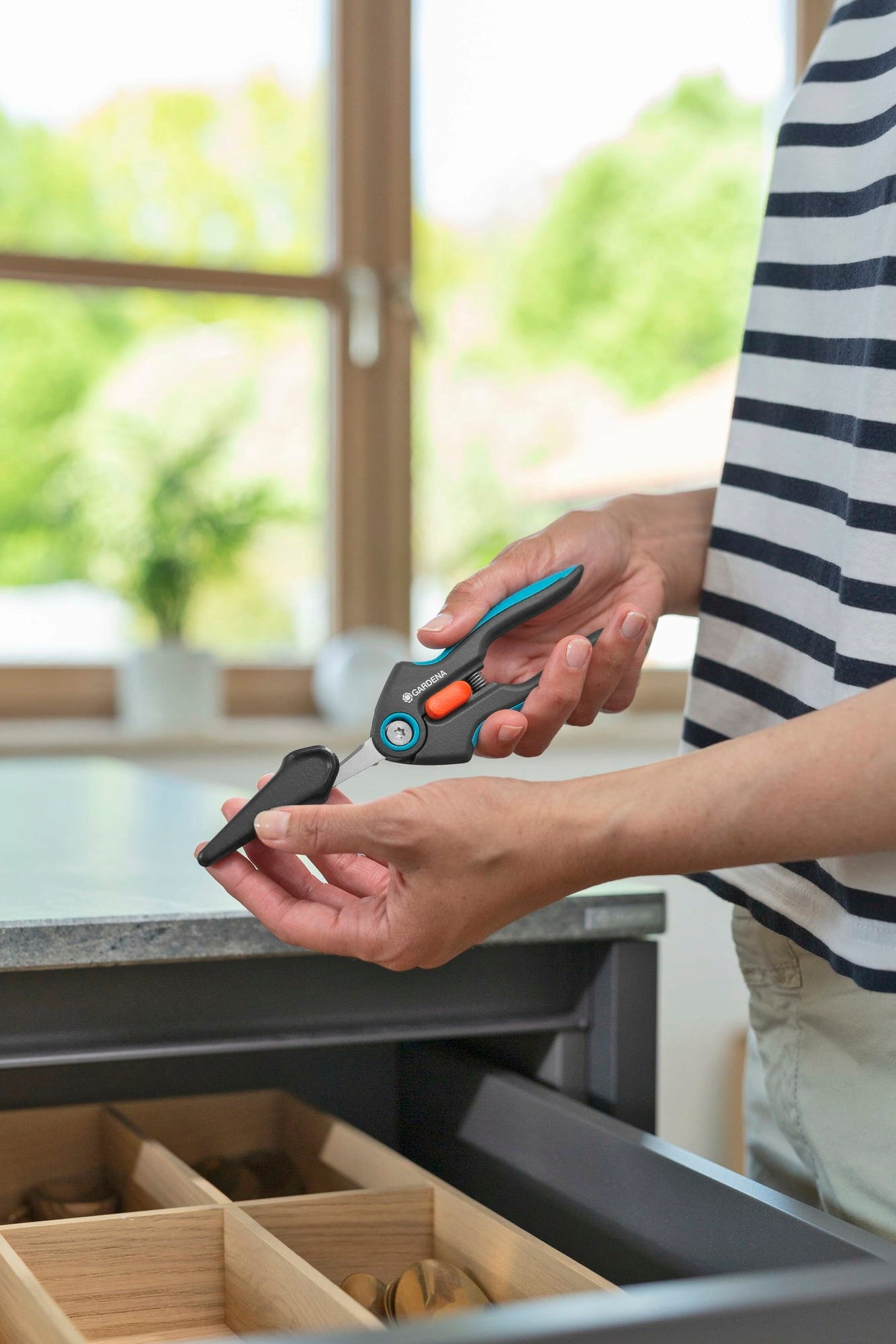 Niezależnie od tego, czy zbierasz drobne zioła, czy kwiaty cięte - sekatory FreshCut firmy GARDENA zawsze zapewniają czyste cięcie dzięki ostrym ostrzom ze stali nierdzewnej. Nożyczki można nawet myć w zmywarce, a następnie bezpiecznie zamknąć za pomocą nasadki ochronnej i schować.