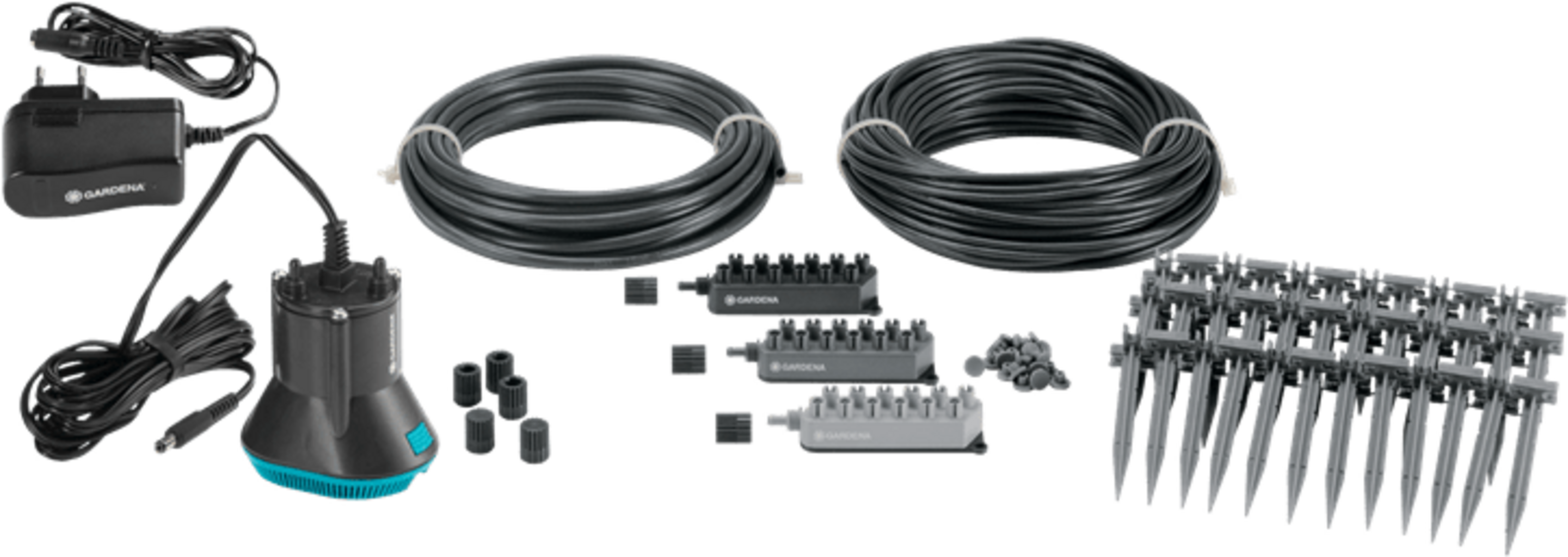 Wyjedź na wakacje, a Twoje rośliny będą pod dobrą opieką dzięki wakacyjnemu systemowi nawadniania Gardena. Można go używać do podlewania nawet 36 roślin doniczkowych. Timer uruchamia nawadnianie na jedną minutę każdego dnia. Za pomocą rozdzielacza z 12 wyjściami można ustawić ilość wody dla różnych roślin. Transformator niskonapięciowy może być używany wewnątrz i na zewnątrz.