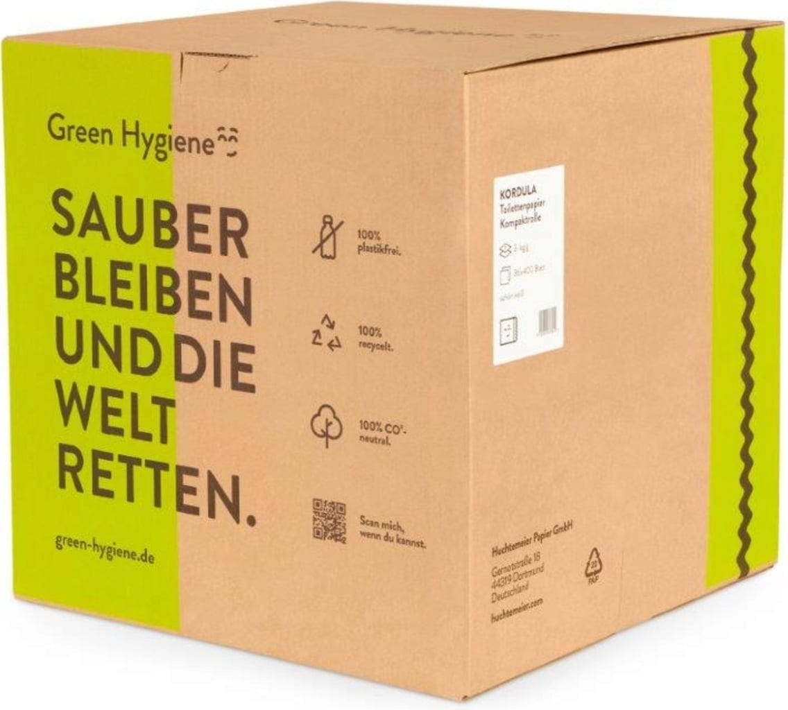 Dzięki temu papierowi toaletowemu otrzymujesz idealne, przyjazne dla środowiska rozwiązanie dla konwencjonalnych artykułów higienicznych i nie rezygnujesz z jakości. Najlepsze w tym jest to, że produkcja papieru toaletowego z makulatury z recyklingu jest uboga w CO₂, ale produkt końcowy zachowuje nadal funkcjonalność i wygodę papieru toaletowego!