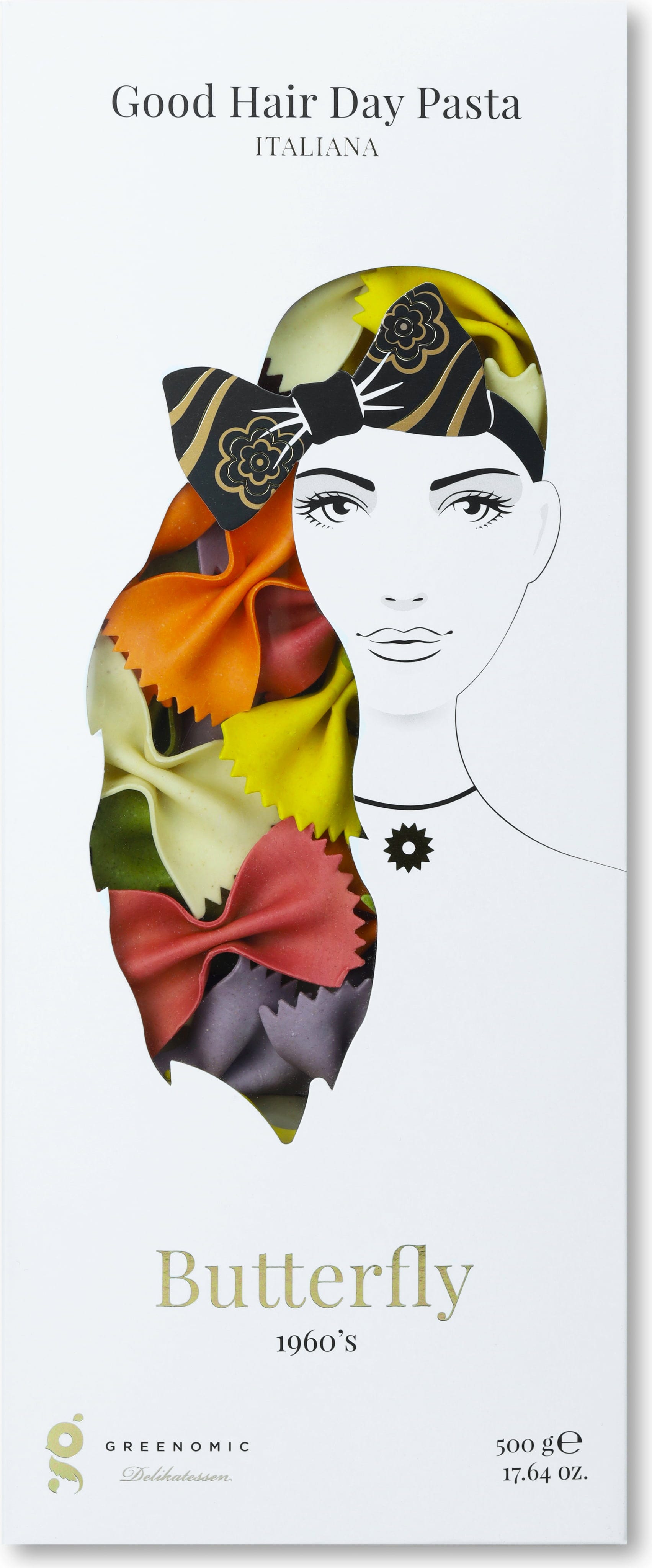 Ten makaron Farfallone z semoliny z pszenicy durum został doprawiony pomidorami, szpinakiem, czerwoną boćwiną, czarną marchewką i kurkumą i nie zawiera jajek. Dzięki wyjątkowej kolorystyce ślicznie prezentuje się nie tylko na talerzu oraz sprawdzi się jako prezent.