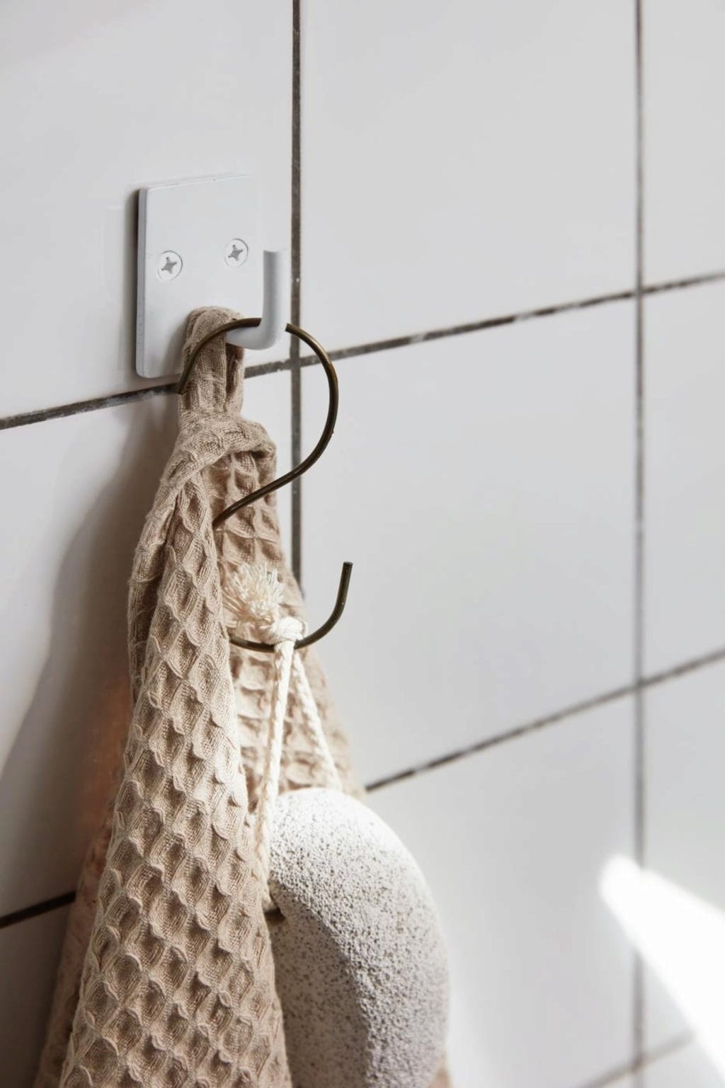 Solidny metalowy hak z białą powłoką. Idealny do zawieszenia ściereczek lub ręczników.