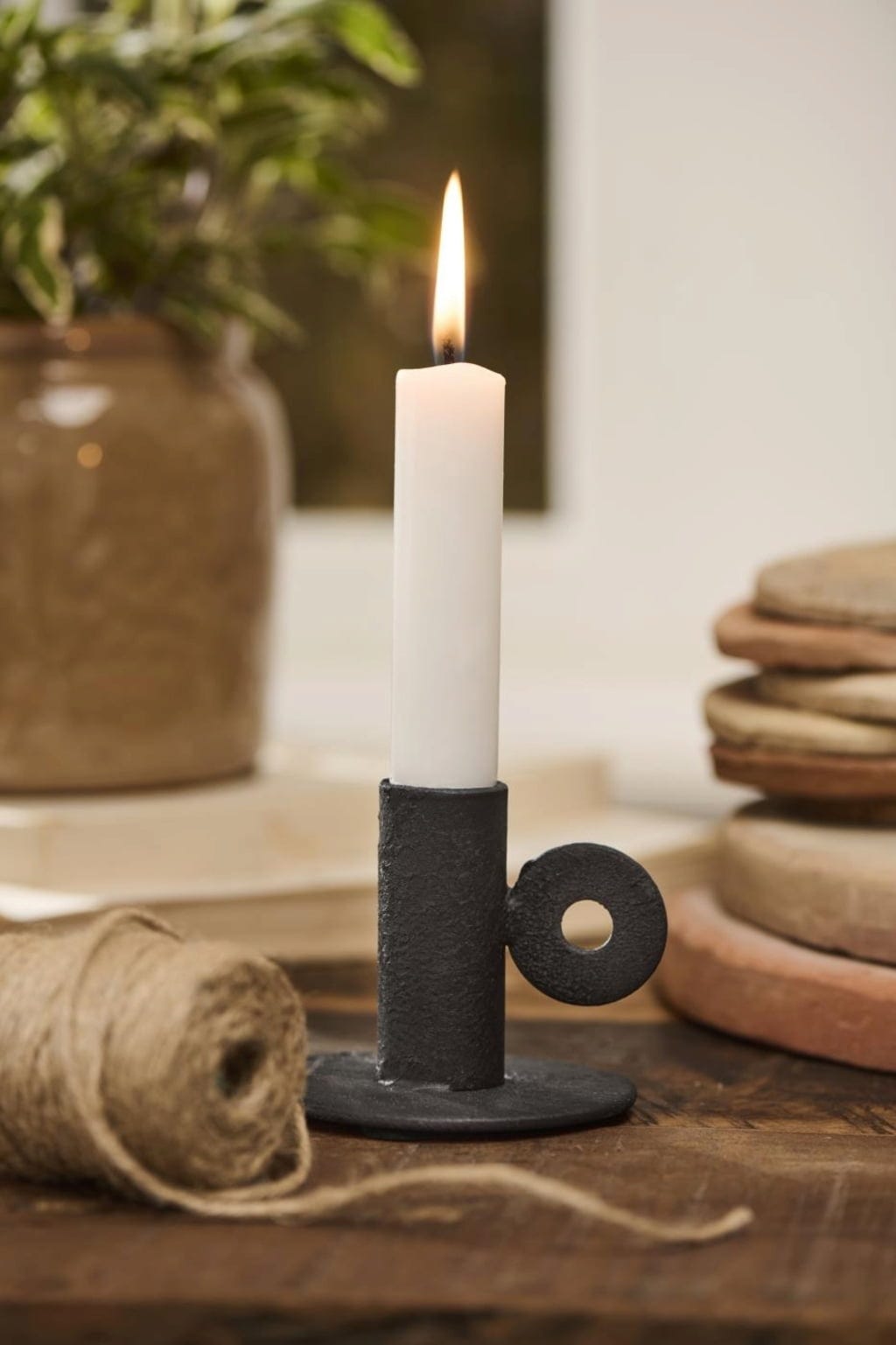Rustykalny metalowy świecznik, który doskonale sprawdzi się zarówno jako samodzielny element dekoracyjny, jak i w połączeniu z innymi akcesoriami domowymi.