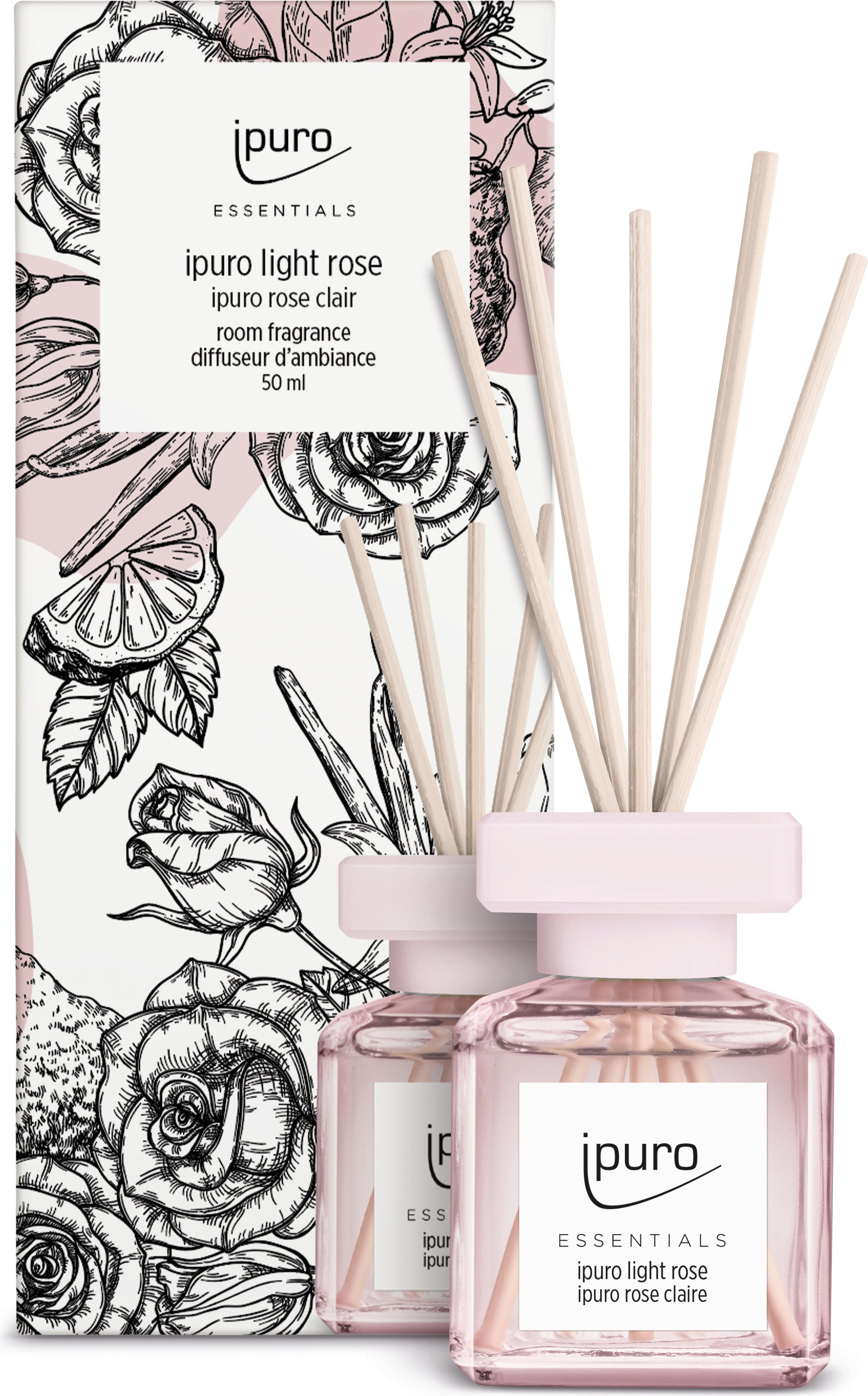 Zapach do pomieszczeń Essentials Light Rose od ipuro roztacza orzeźwiający różany zapach w Twojej przestrzeni życiowej. Owocowo-słodkie niuanse kandyzowanych owoców, bergamotki i białego piżma, a także delikatne nuty wanilii uszlachetniają ten wyjątkowy zapach.