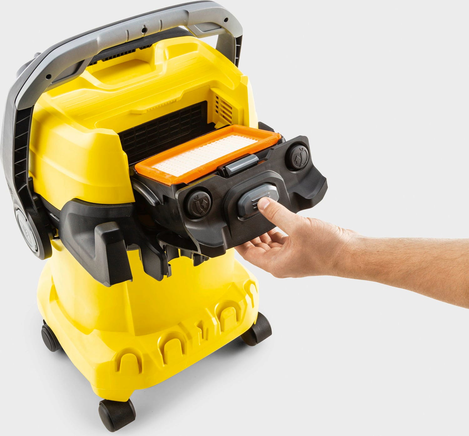 Bezstopniowa regulacja mocy (Power-Control) umożliwia dostosowanie siły ssania, na przykład podczas czyszczenia delikatnych powierzchni w samochodzie lub zbierania gruzu, trocin i pyłu na budowie. Dzięki kablowi zasilającemu o długości 5 metrów i wężowi ssącemu o długości 2,2 metra urządzenie oferuje duży promień działania. Funkcja czyszczenia filtra zapewnia stale wysoką wydajność bez konieczności częstej wymiany filtra.