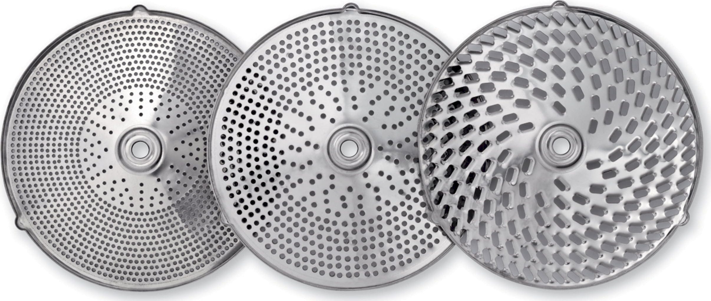 Idealna do przecierania owoców, warzyw i ciasta na szpecle/kluski. Sitko jest wyposażone w trzy różne tarcze: z drobnymi, średnimi i dużymi oczkami. Dzięki temu można ją dostosować do każdej sytuacji.