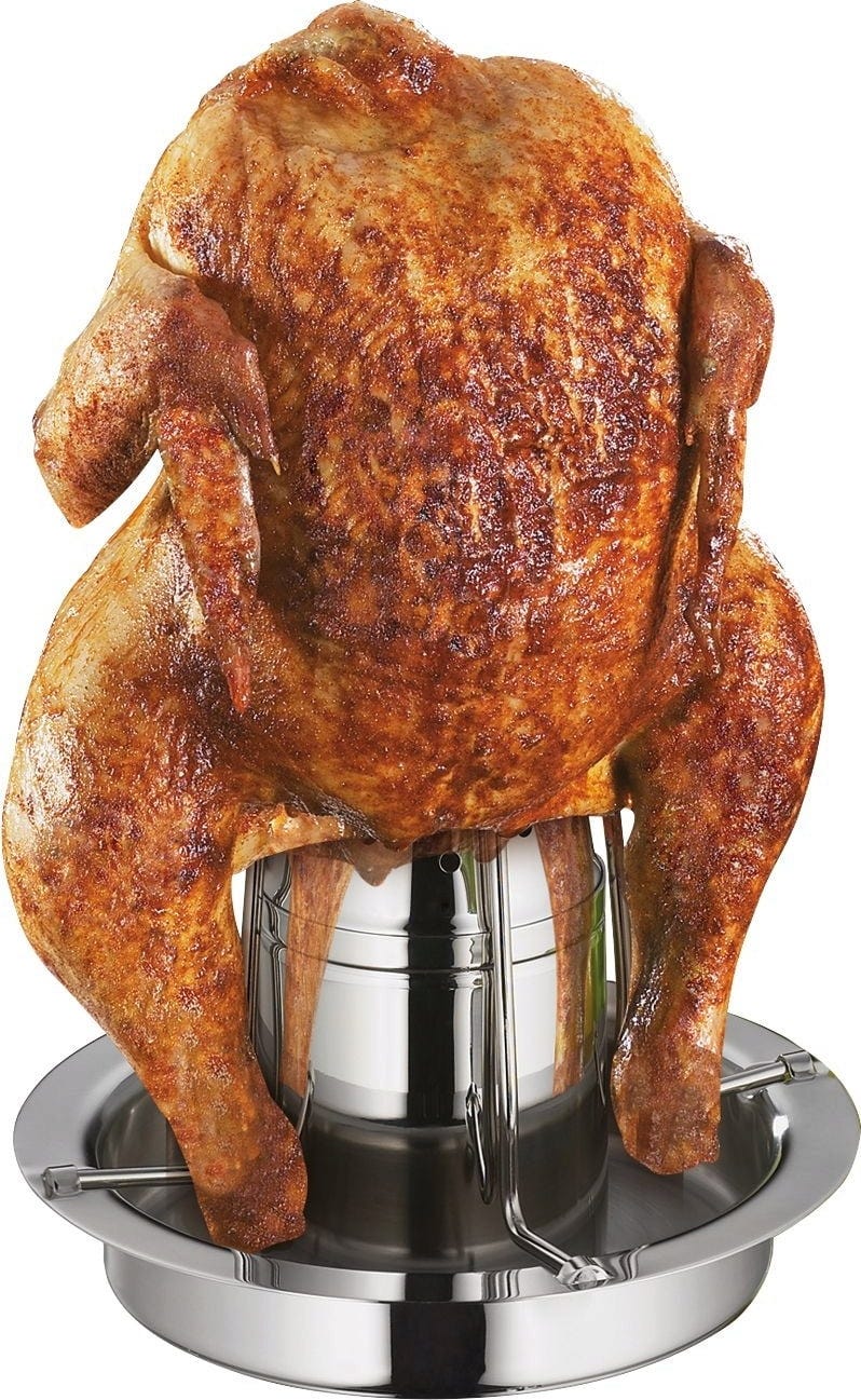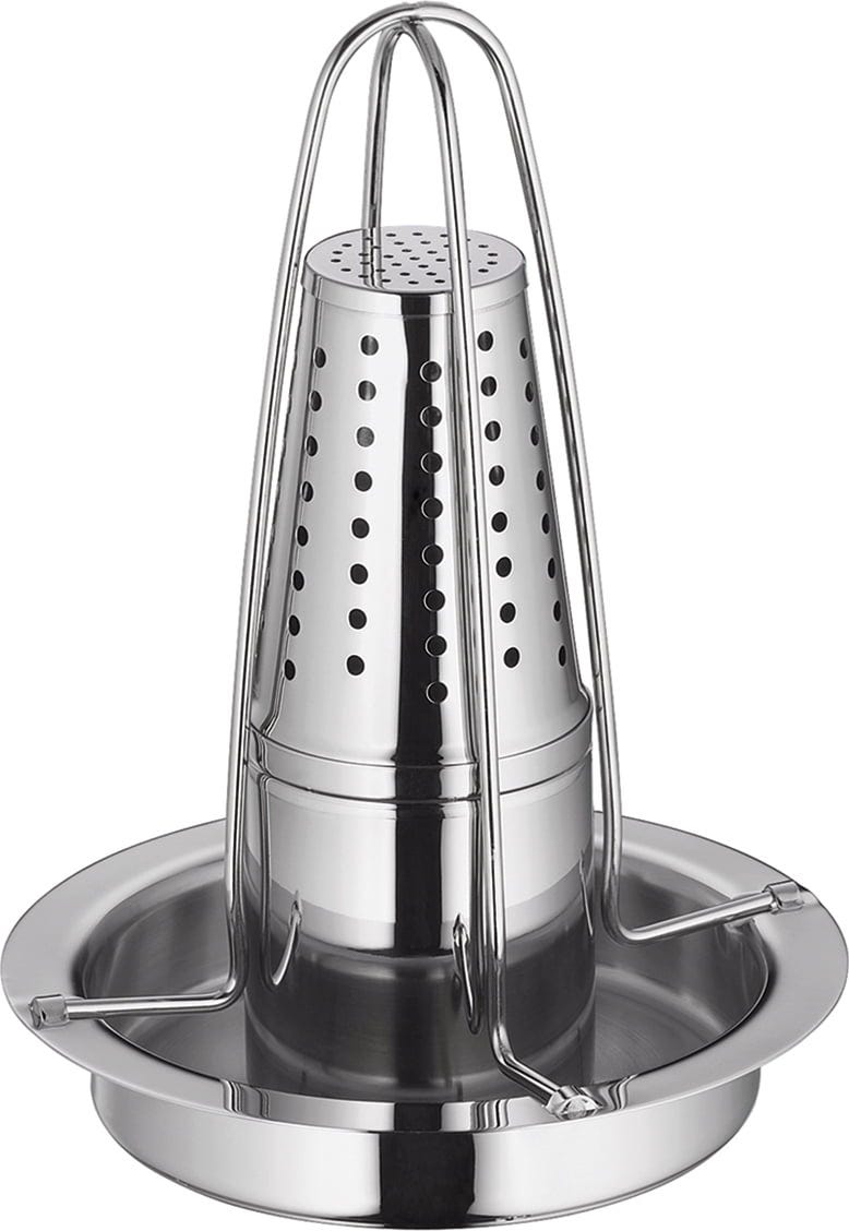 Idealna do soczystego kurczaka. Niezależnie od tego, czy grillujesz w czajniku, czy w piekarniku, dzięki formie do kurczaka z grilla ADVANTAGE firmy Küchenprofi możesz spodziewać się chrupiących rezultatów.