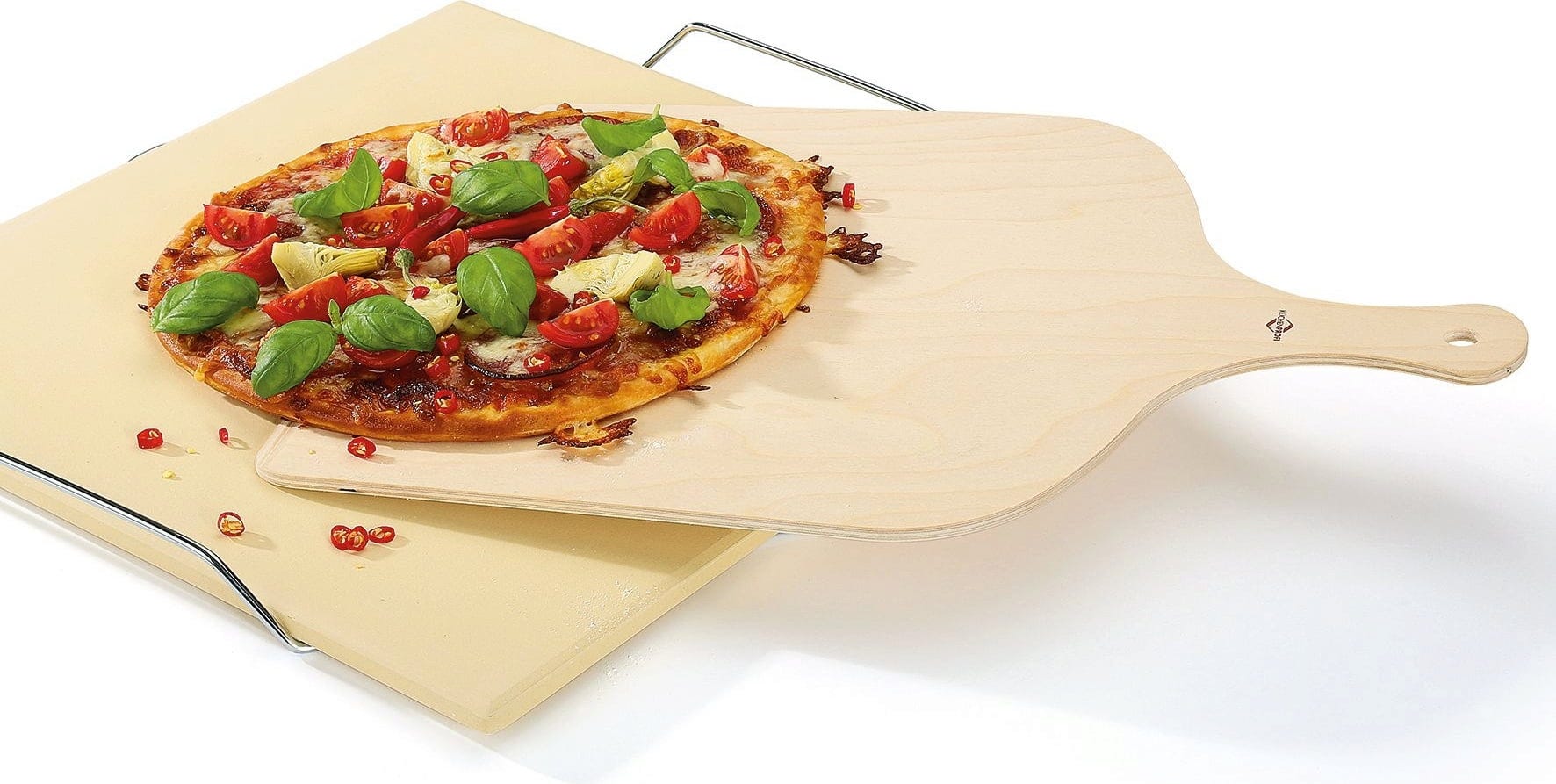 - Łatwo wsuwa się pod pizzę, tarte flambée i inne dzięki spłaszczonej stronie