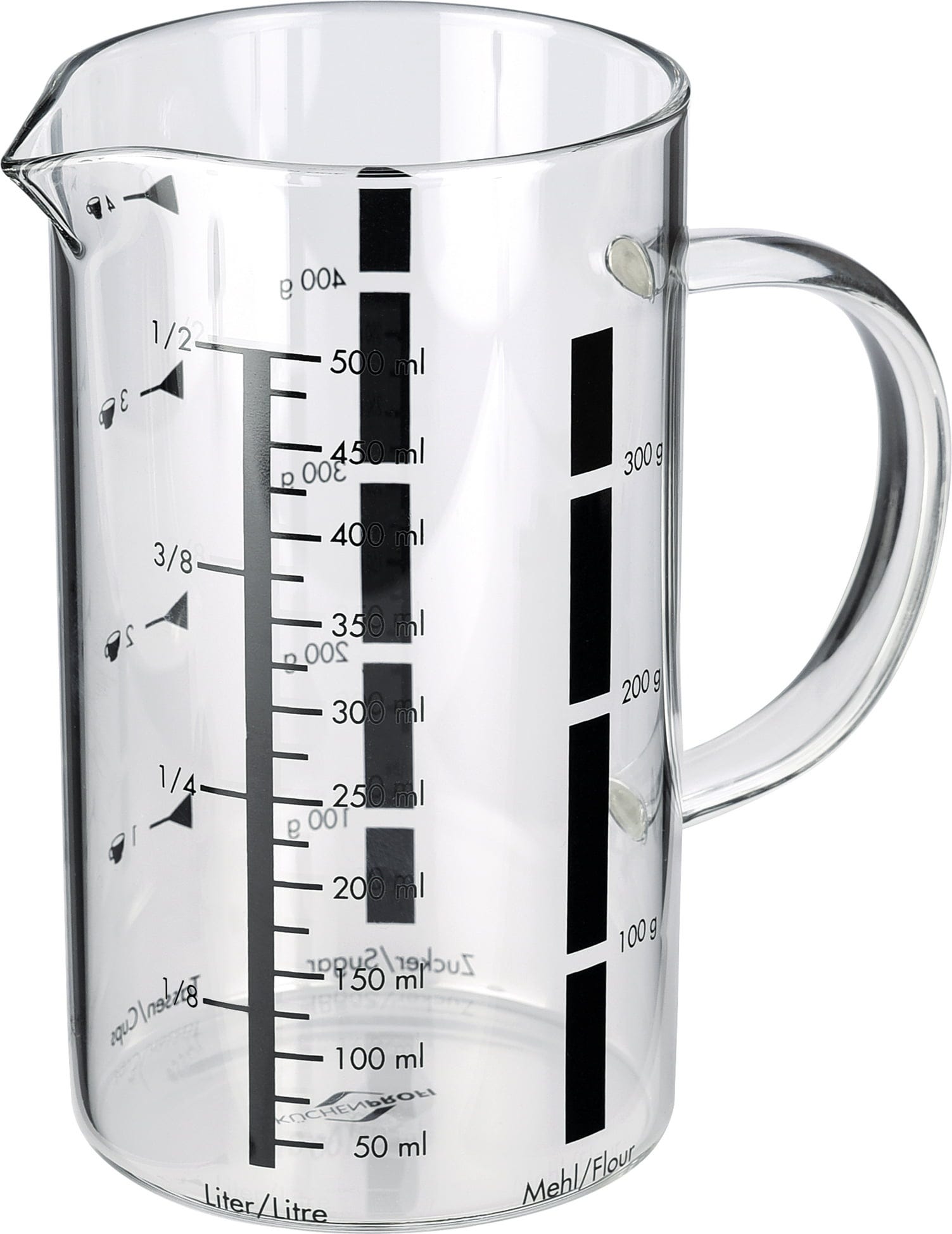 - Skala dla gramów, litrów, mililitrów i filiżanek