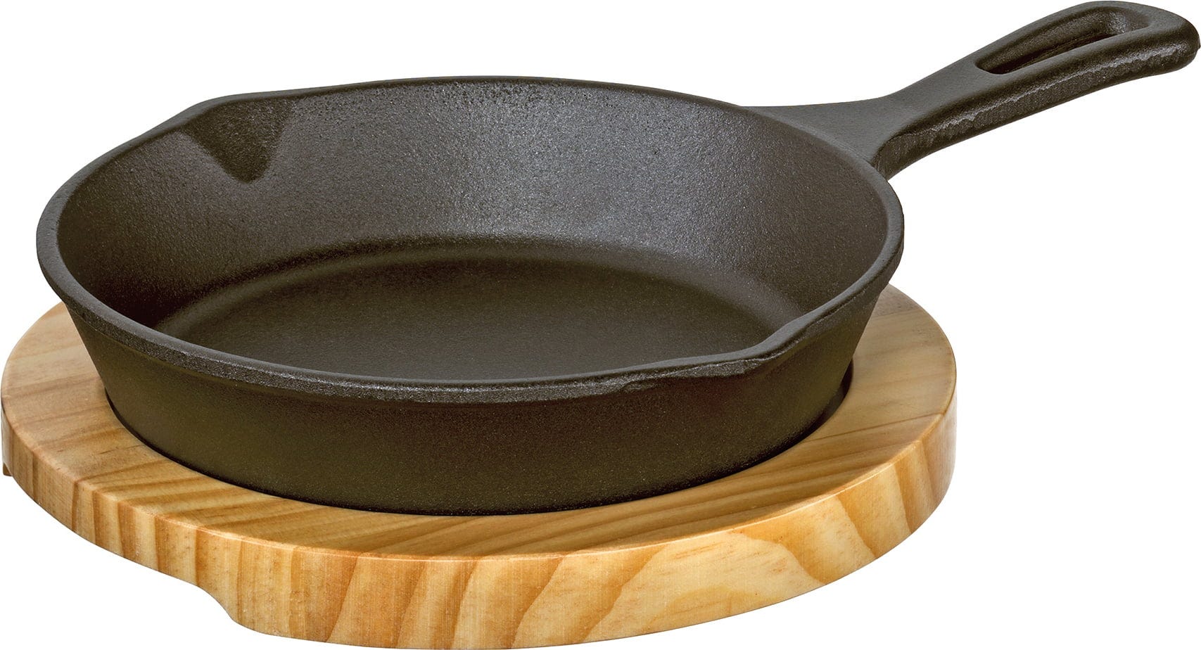 Küchenprofi Patelnia do serwowania BBΩ, okrągła, z uchwytem i drewnianą deską