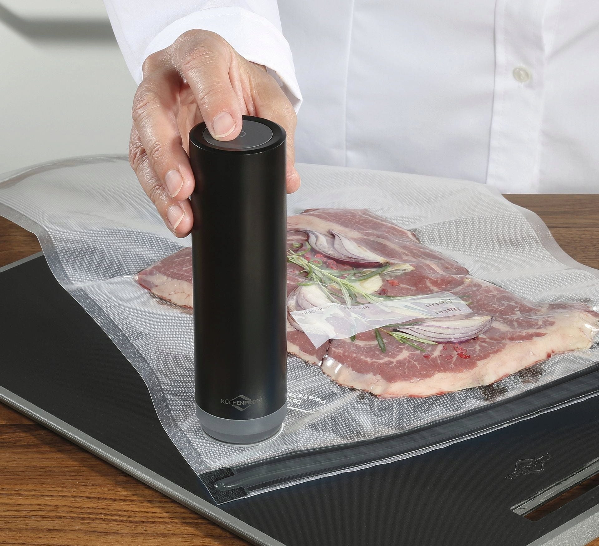 Świeżość za naciśnięciem jednego przycisku! Z elektryczną pompką próżniową Küchenprofi to żaden problem i to w mgnieniu oka.