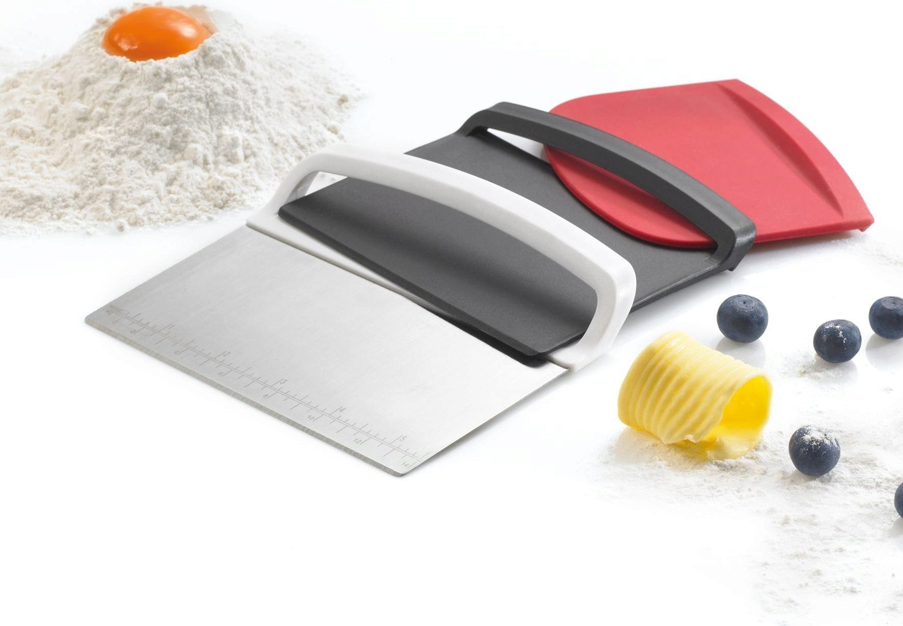 Krajalnica do ciasta, skrobaczka do ciasta i szpatułka kuchenna