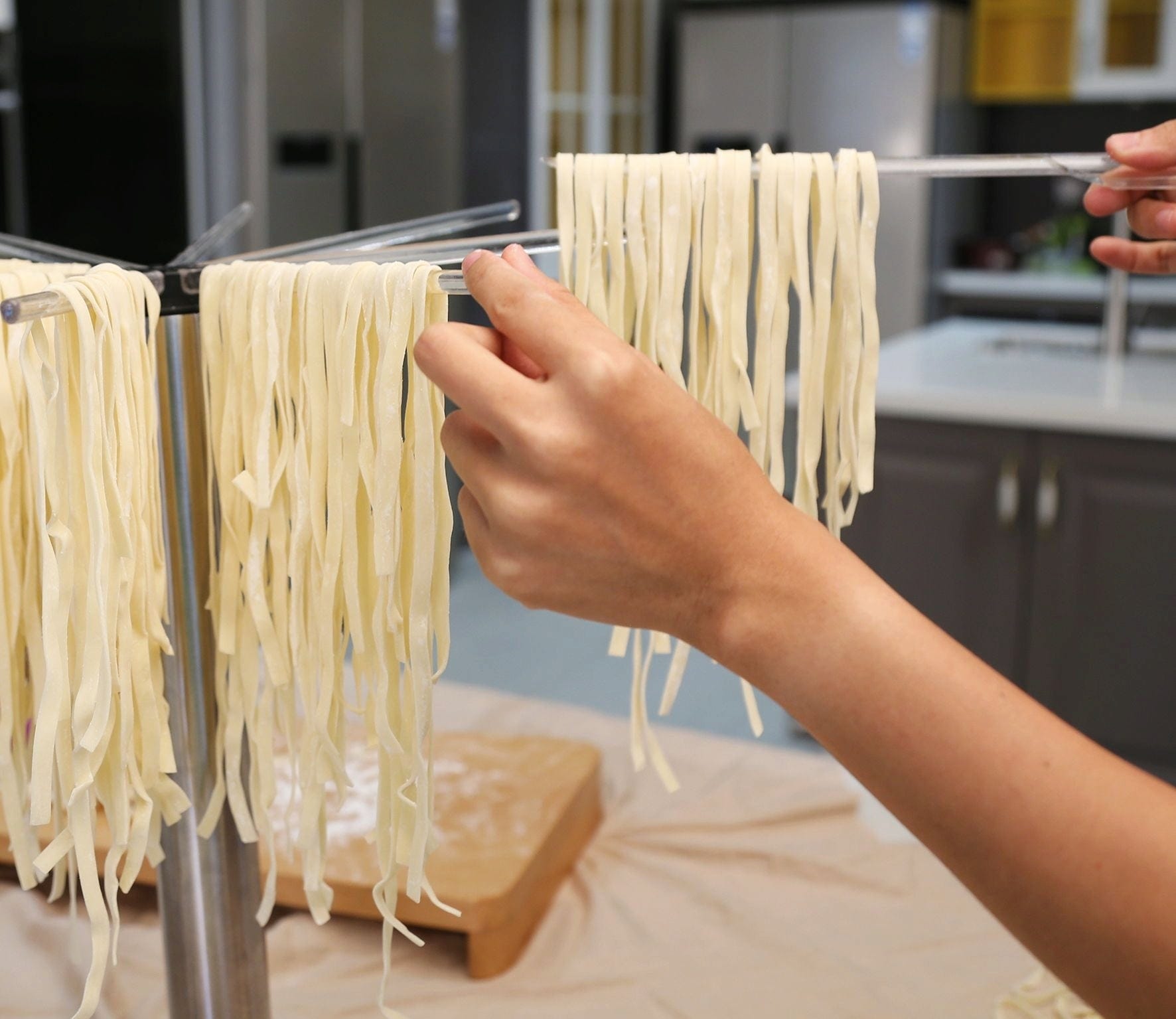 Suszarka do makaronu PASTACASA PLUS sprawia, że suszenie domowego makaronu jest łatwe i nieskomplikowane. Dzięki 8 ramionom ze stali nierdzewnej oferuje wystarczająco dużo miejsca, aby zapobiec stykaniu się i sklejaniu makaronu.