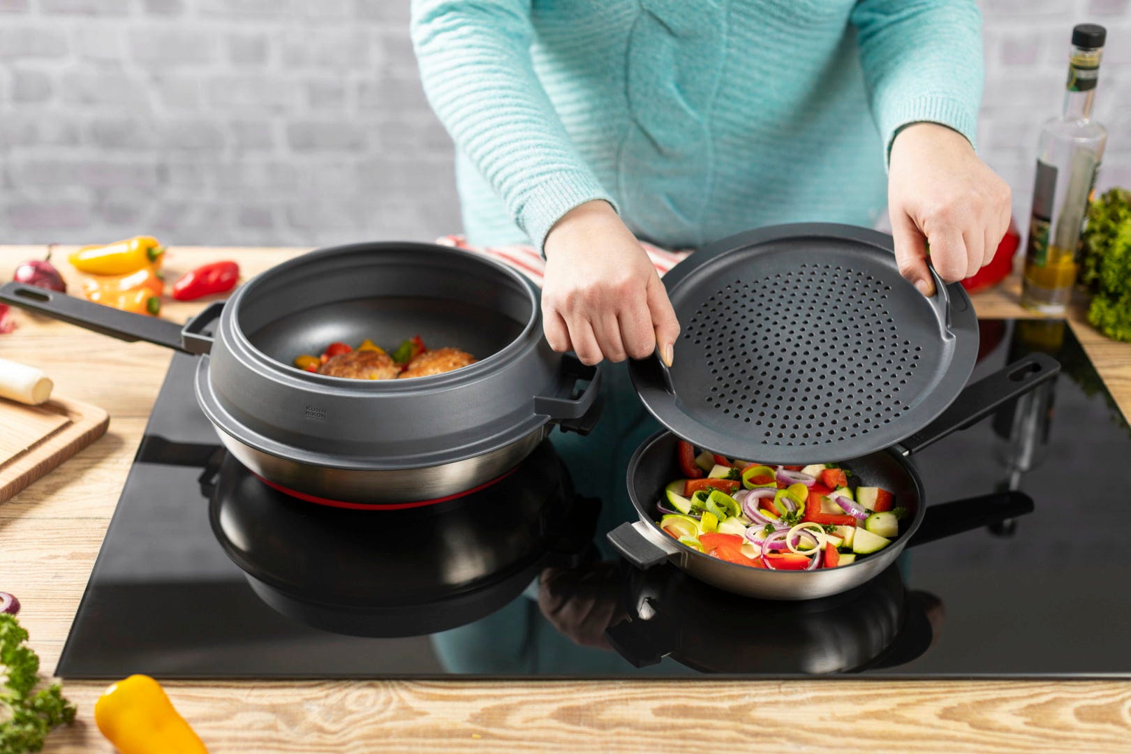 Wielofunkcyjność, która nie pozostawia nic do życzenia: inteligentne gotowanie, łatwe serwowanie, utrzymywanie świeżości i oszczędność miejsca.