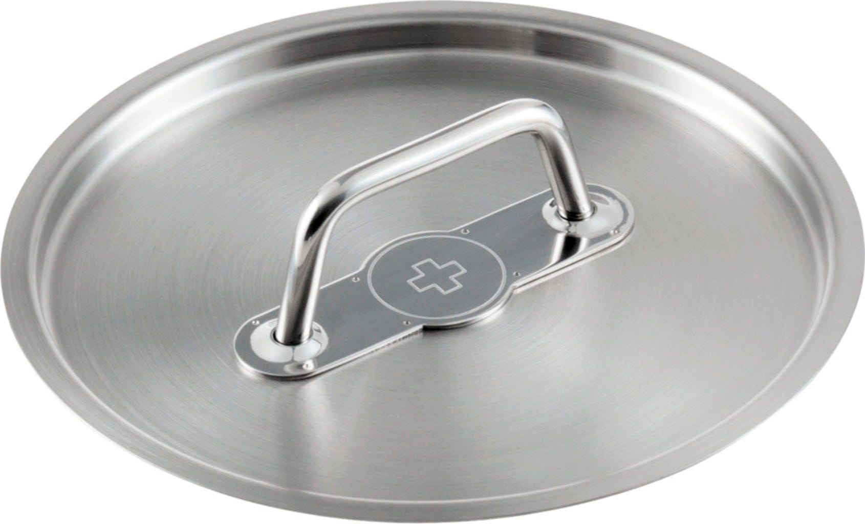 Pokrywka wykonana z wysokiej jakości matowej, szczotkowanej stali nierdzewnej uzupełnia serię naczyń kuchennych MONTREUX firmy Kuhn-Rikon. Ozdobne wytłoczenie z krzyżem szwajcarskim dopełnia stylowego ogólnego wrażenia
