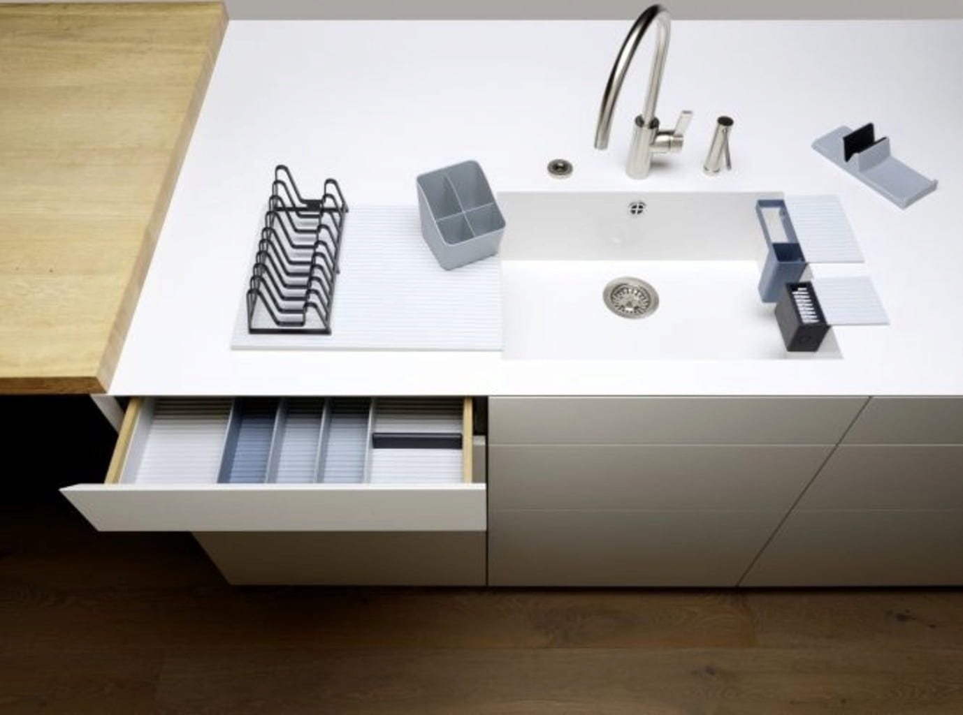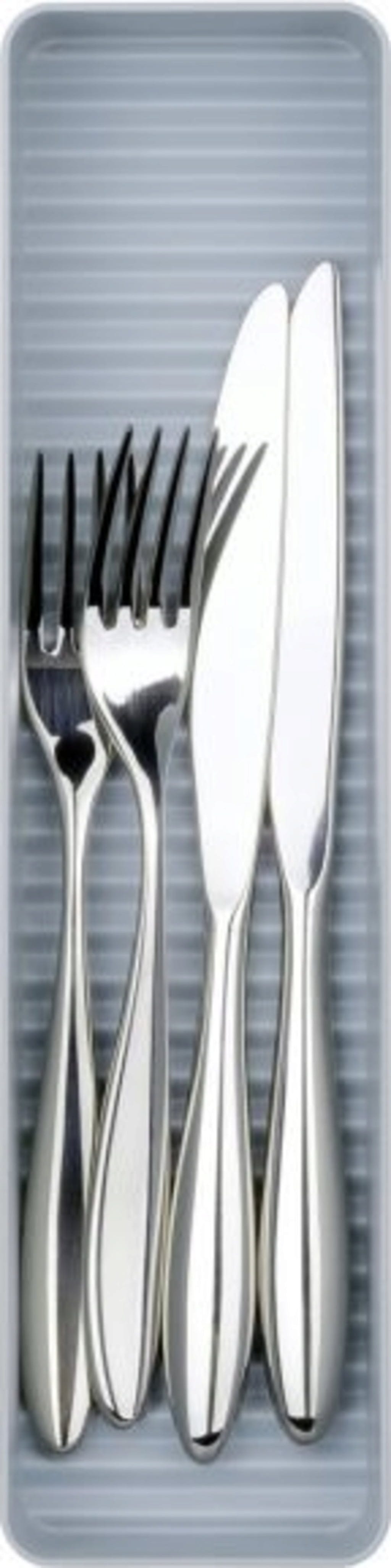 Przejrzyście zorganizowany wkład do szuflad jest idealny do szybkiego znajdowania przyborów kuchennych lub materiałów biurowych. Zapewnia porządek i łatwe wyjmowanie dzięki falistej podstawie.