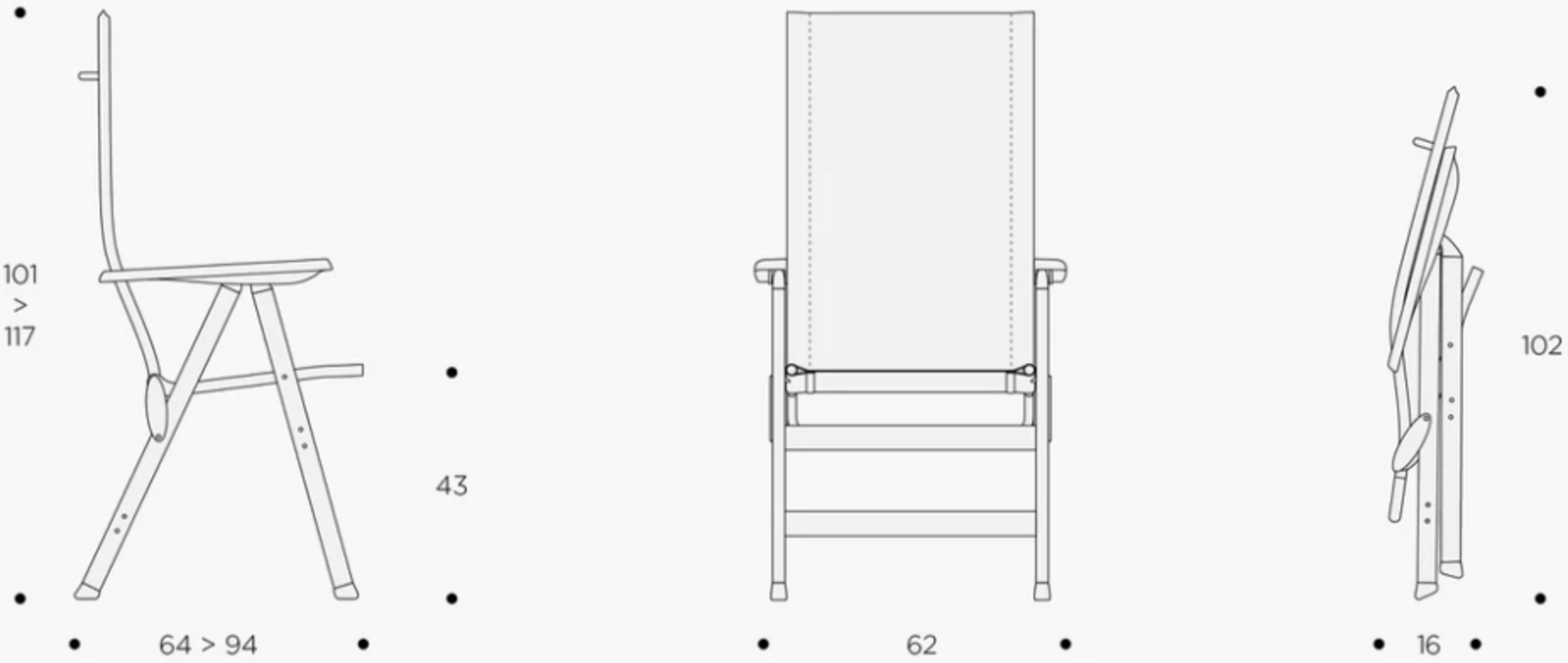 - Wys. x szer. x gł. (po otwarciu): 101 - 117 x 62 x 64 - 94 cm
