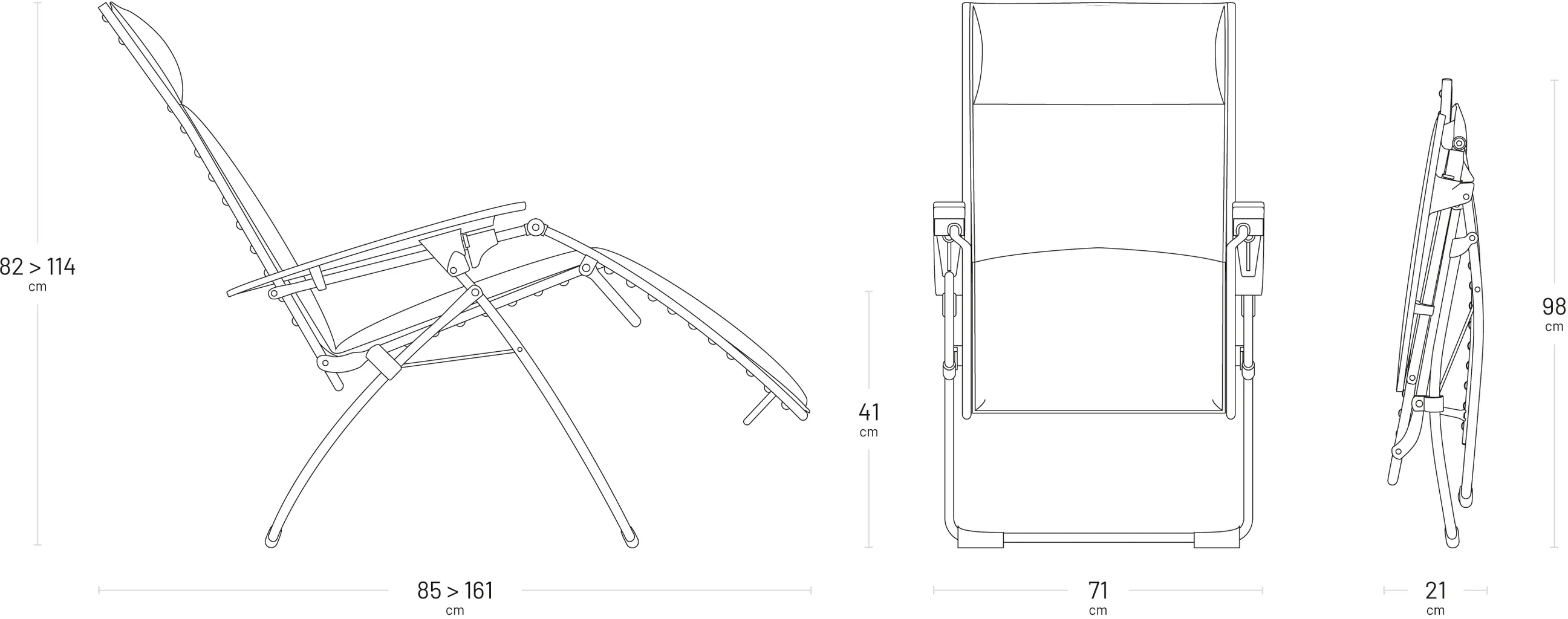 Czysty relaks i wyjątkowy komfort. Wielopozycyjny fotel „Evolution” z 3-warstwową, miękką tapicerką został zaprojektowany tak, aby zapewnić idealną pozycję relaksacyjną, opartą na „zasadzie zerowej grawitacji”, nawet w praktycznym fotelu składanym. Podobnie jak w stanie zerowej grawitacji, maksymalny relaks osiąga się, gdy nogi znajdują się lekko uniesione ponad poziom serca.