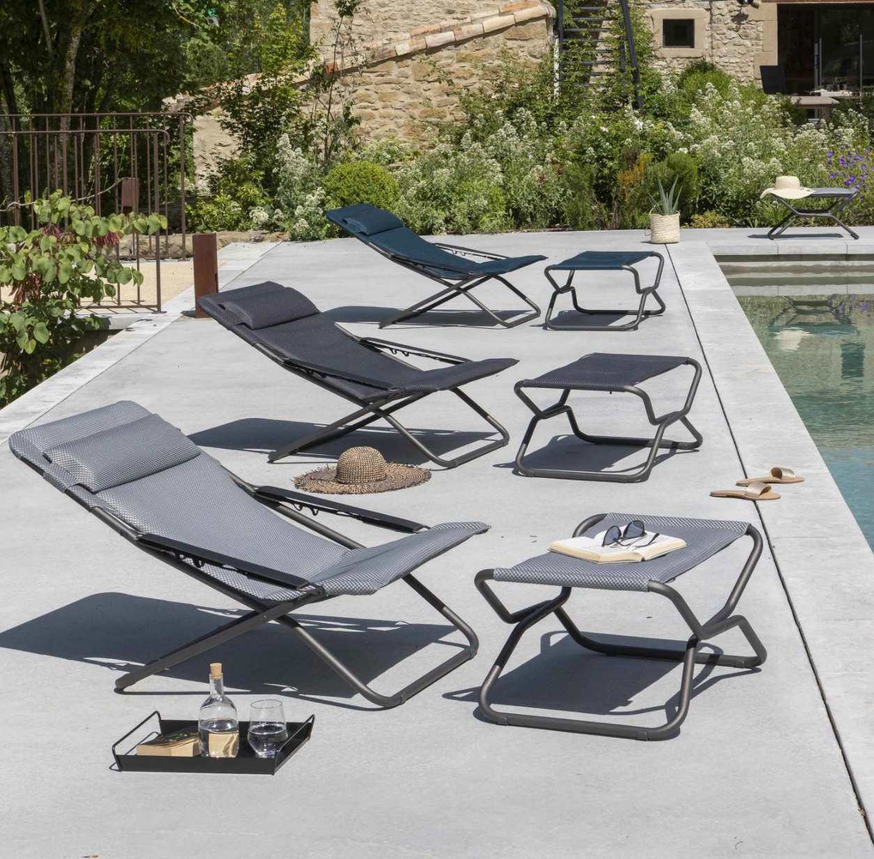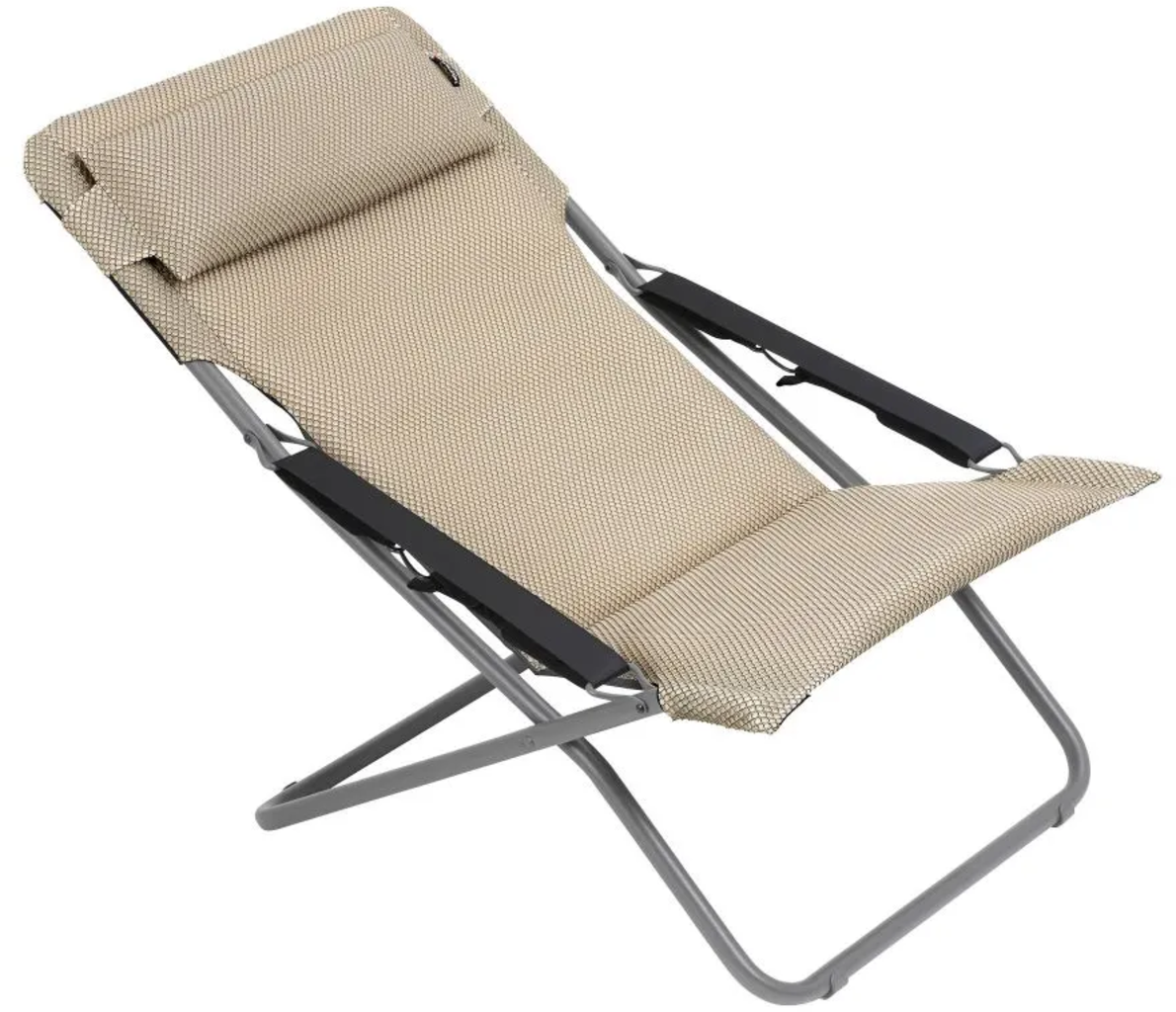 Bardzo miękki leżak „Transabed” o kompaktowych rozmiarach po złożeniu zachwyca nie tylko dużą powierzchnią do leżenia, ale także doskonale przemyślanym designem. Przednia część nie ma poprzeczek, które mogłyby przeszkadzać, czego efektem jest jeszcze większy komfort umożliwiający odprężenie. Produkt ten można regulować w trzech pozycjach - również do pozycji leżącej - w bardzo prosty i praktyczny sposób za pomocą systemu karabinków zintegrowanego z podłokietnikami.