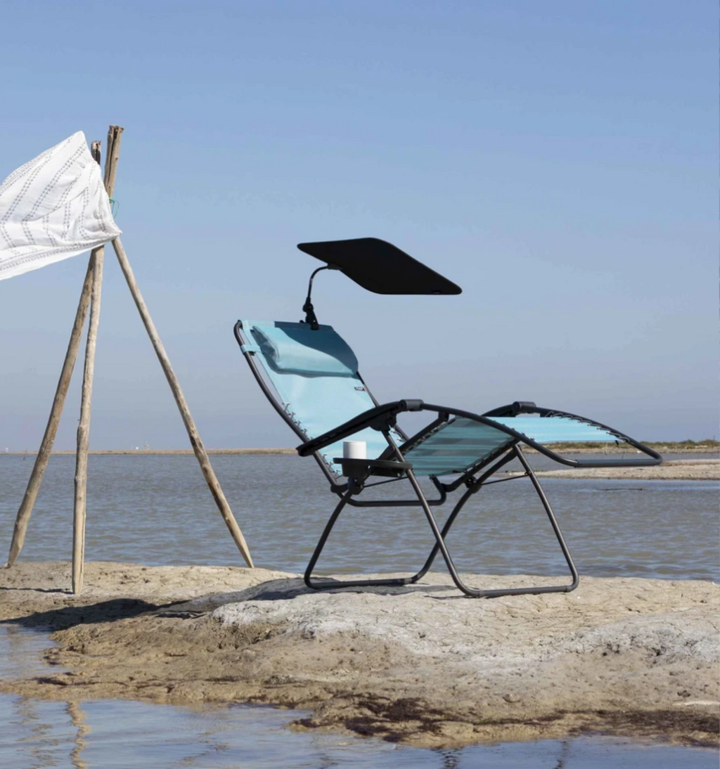 Niezbędny do komfortowego relaksu w słoneczne dni. Ten czarny, odporny na promieniowanie UV i minimalistyczny parasol można szybko i łatwo zamontować na leżakach i fotelach za pomocą okrągłych rurek o średnicy do 22 mm. System regulacji pozwala błyskawicznie dostosować pozycję parasola do pozycji słońca.