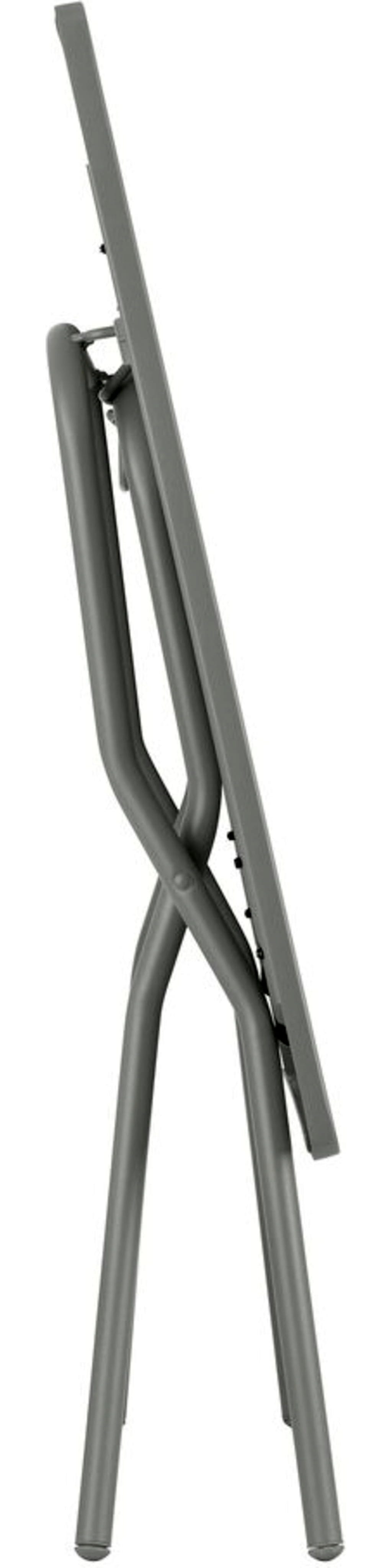 Nieznaczne nierówności podłoża można łatwo zniwelować za pomocą regulowanych nóżek, dzięki czemu wszystko stoi stabilnie i bez chwiania się. Obsługa jest szczególnie praktyczna: jeśli chcesz wykorzystać przestrzeń na tarasie lub balkonie na coś innego, możesz złożyć stół jedną ręką dzięki intuicyjnemu uchwytowi. Stół został zaprojektowany tak, aby po złożeniu stał całkowicie samodzielnie, dzięki czemu zajmuje niewiele miejsca i jest łatwy w przechowywaniu.