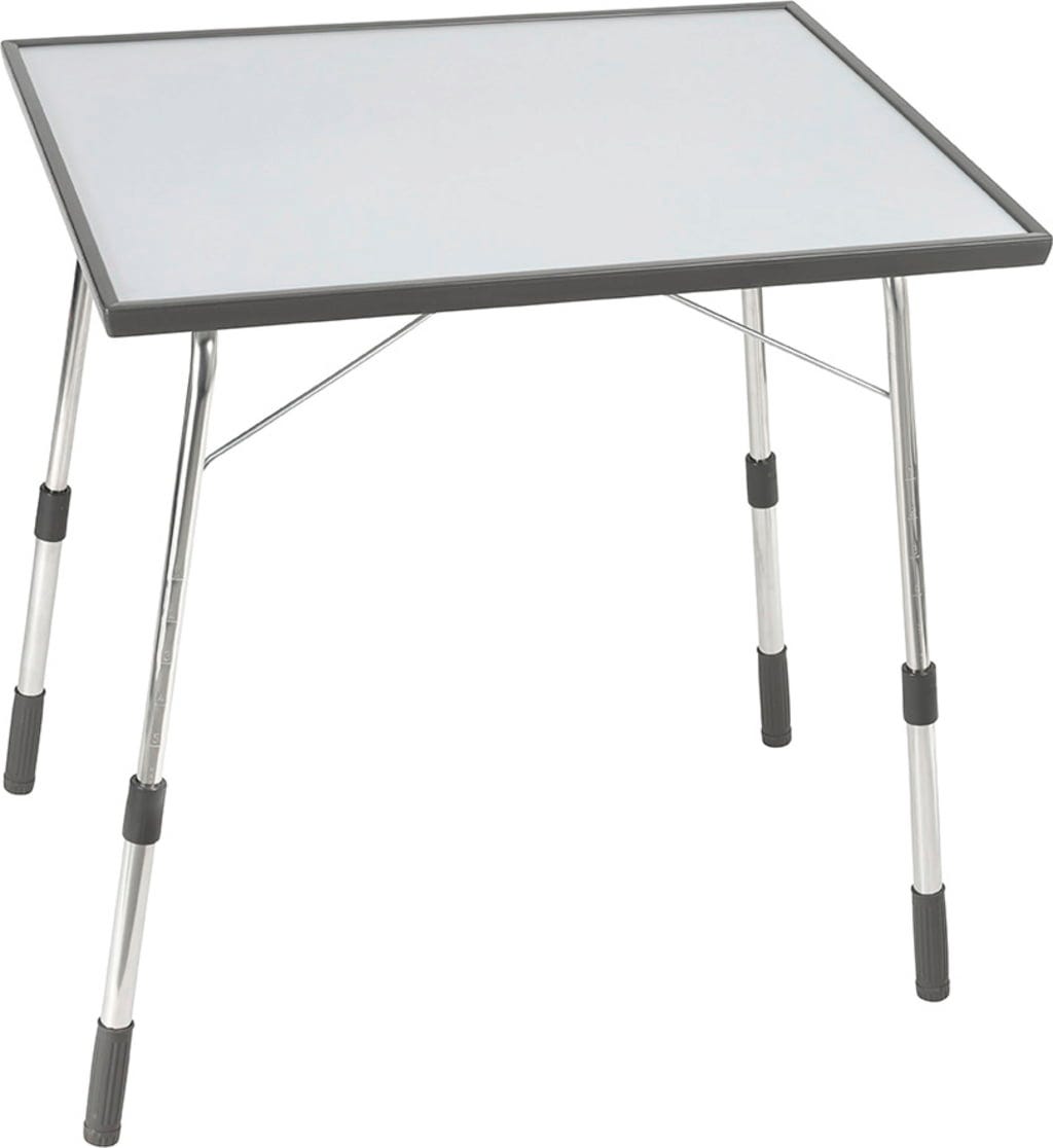 Stół, który może pomieścić do czterech osób, jest niezwykle wytrzymały: solidny blat jest nie tylko odporny na promieniowanie UV i wodę, ale może również wytrzymać wysokie temperatury do 140 ° C. Szczególną atrakcją są cztery indywidualnie regulowane nogi stołu, które gwarantują optymalne ustawienie stołu nawet na nierównym terenie dzięki mechanizmowi teleskopowemu.