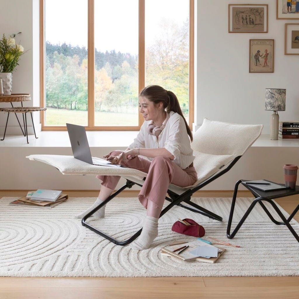 Poczuj najwyższy komfort i głęboki relaks w zaciszu własnego domu dzięki fotelowi TRANSALOUNGE Niksen marki Lafuma. Ten designerski fotel zapewnia wyjątkową pozycję „Zero Gravity”, w której nogi spoczywają lekko nad sercem, zapewniając wyjątkowe uczucie lekkości. Luźna konstrukcja i miękka, modna tapicerka bouclé otulają Cię niczym ciepły kokon, stanowiąc jednocześnie efektowny element każdego wnętrza.