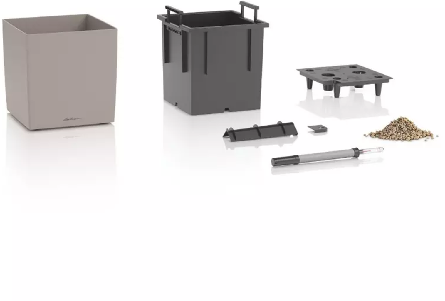 CUBE Color 40 eksponuje rośliny na dużej powierzchni. Elegancki, powściągliwy design stawia roślinę w centrum uwagi, podczas gdy praktyczny system nawadniania zapewnia zdrowy wzrost przy minimalnym nakładzie pracy. Piaskowobrązowa, jedwabiście matowa powierzchnia sprawia, że doniczka w kształcie sześcianu przyciąga wzrok zarówno wewnątrz, jak i na zewnątrz.