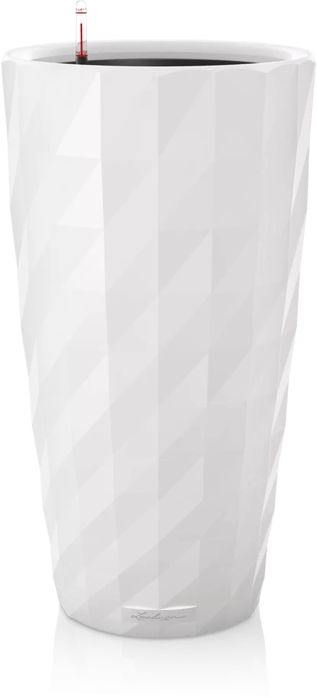 Niezwykła donica Diamante Premium zachwyca nie tylko eleganckim designem, przypominającym oszlifowane diamenty, ale także sprytnymi rozwiązaniami wewnętrznymi. Wyjmowana wkładka na rośliny, w tym opatentowany system nawadniania Lechuza, sprawia, że zmiana roślin jest szybka i łatwa.