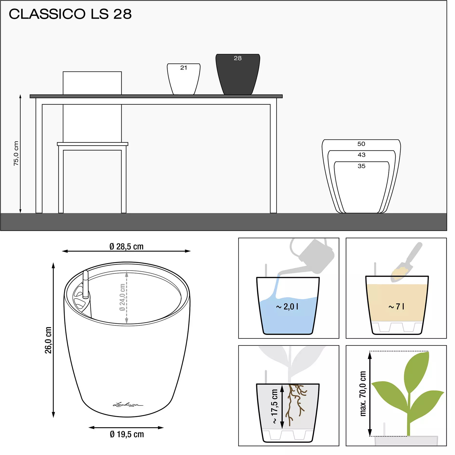 - Zawiera sprytny system nawadniania Lechuza-KLASSIK