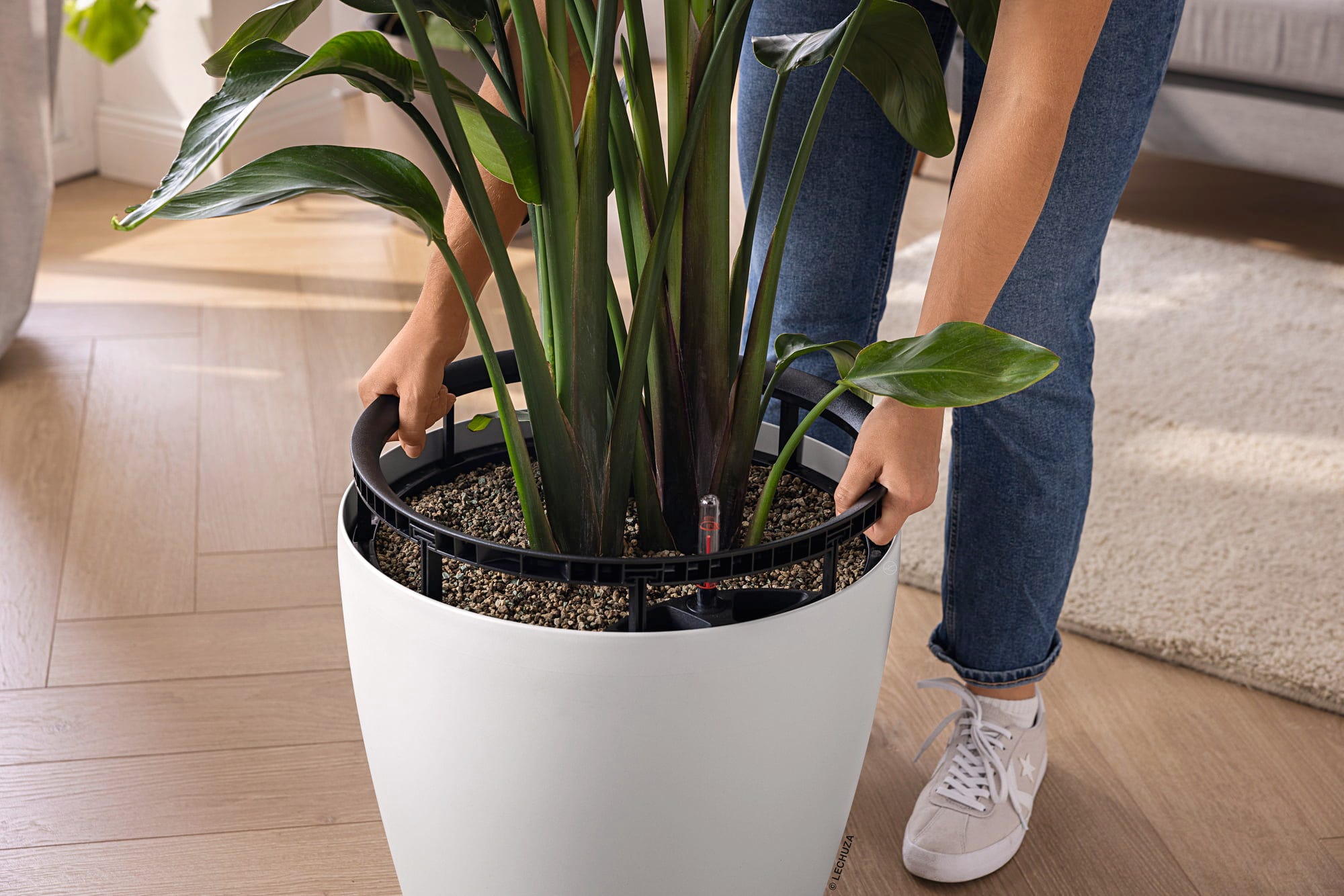• Dodatkowa wygoda: wymienna wkładka na rośliny z uchwytem do łatwego przesadzania, przycinania korzeni lub czyszczenia doniczki