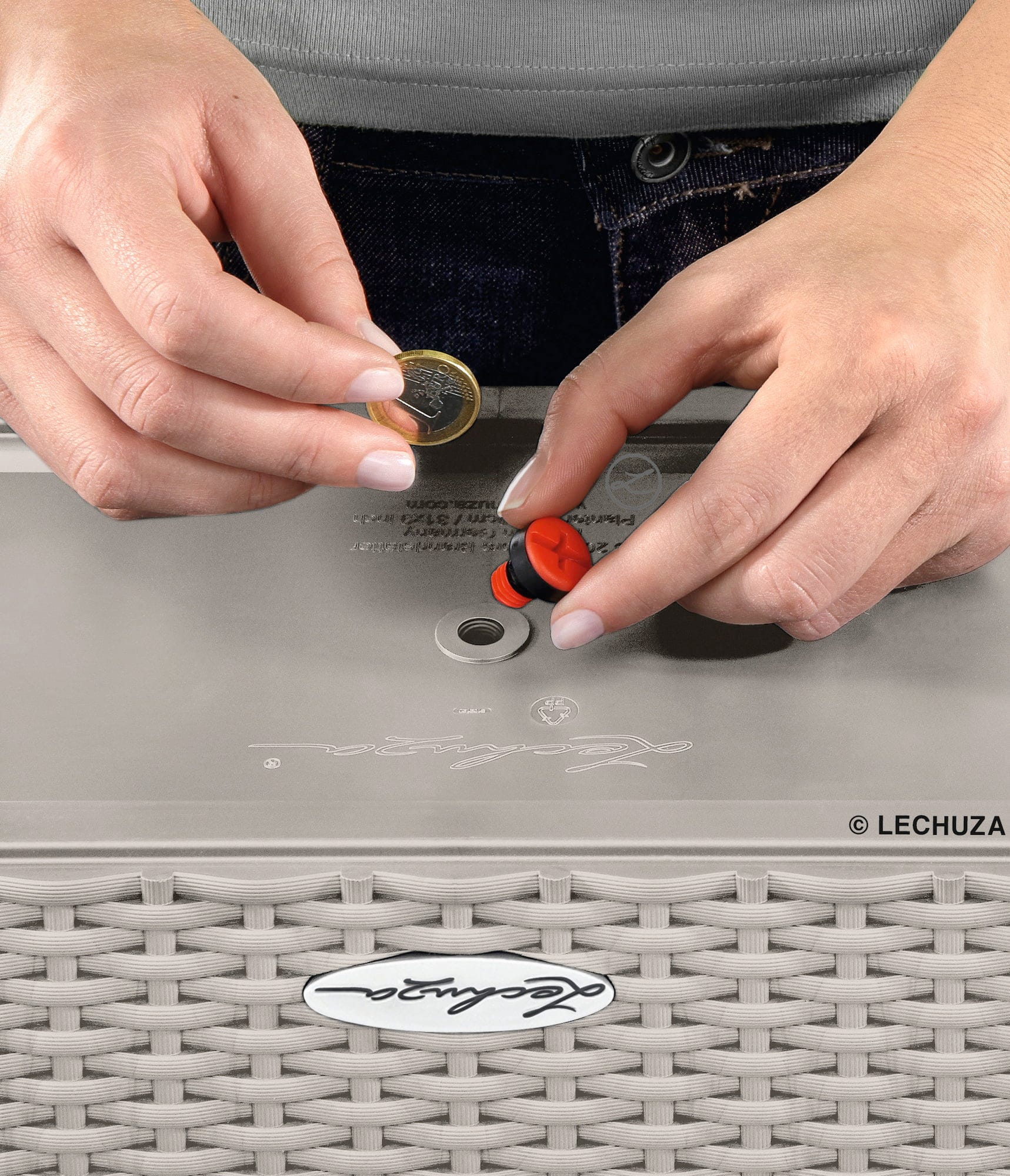 - Zintegrowana śruba do użytku na zewnątrz umożliwia odprowadzanie nadmiaru wody deszczowej lub nawadniającej