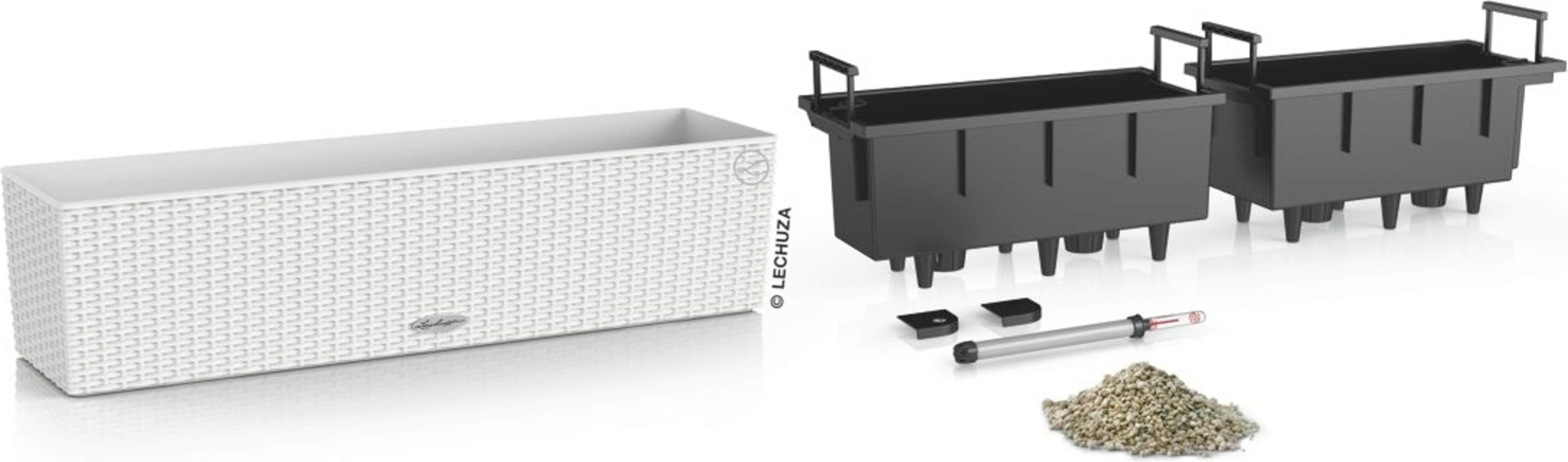 Inspirowana romantycznym stylem wiejskim doniczka „Balconera Cottage” oferuje mnóstwo miejsca na kolorowe, bujne kwiaty. Wyrafinowany system „All-in-One” z dwoma wyjmowanymi wkładami oraz inteligentny system nawadniania ziemnego Lechuza sprawiają, że ta skrzynka staje się absolutnym ulubieńcem sezonu balkonowego. Niezależnie od tego, czy zostanie ustawiona jako wolnostojąca, czy przymocowana do balustrady balkonowej za pomocą dostępnego osobno uchwytu – ta skrzynka balkonowa wykonana z odpornego na promieniowanie UV polipropylenu zawsze przyciąga wzrok stylowym wyglądem.