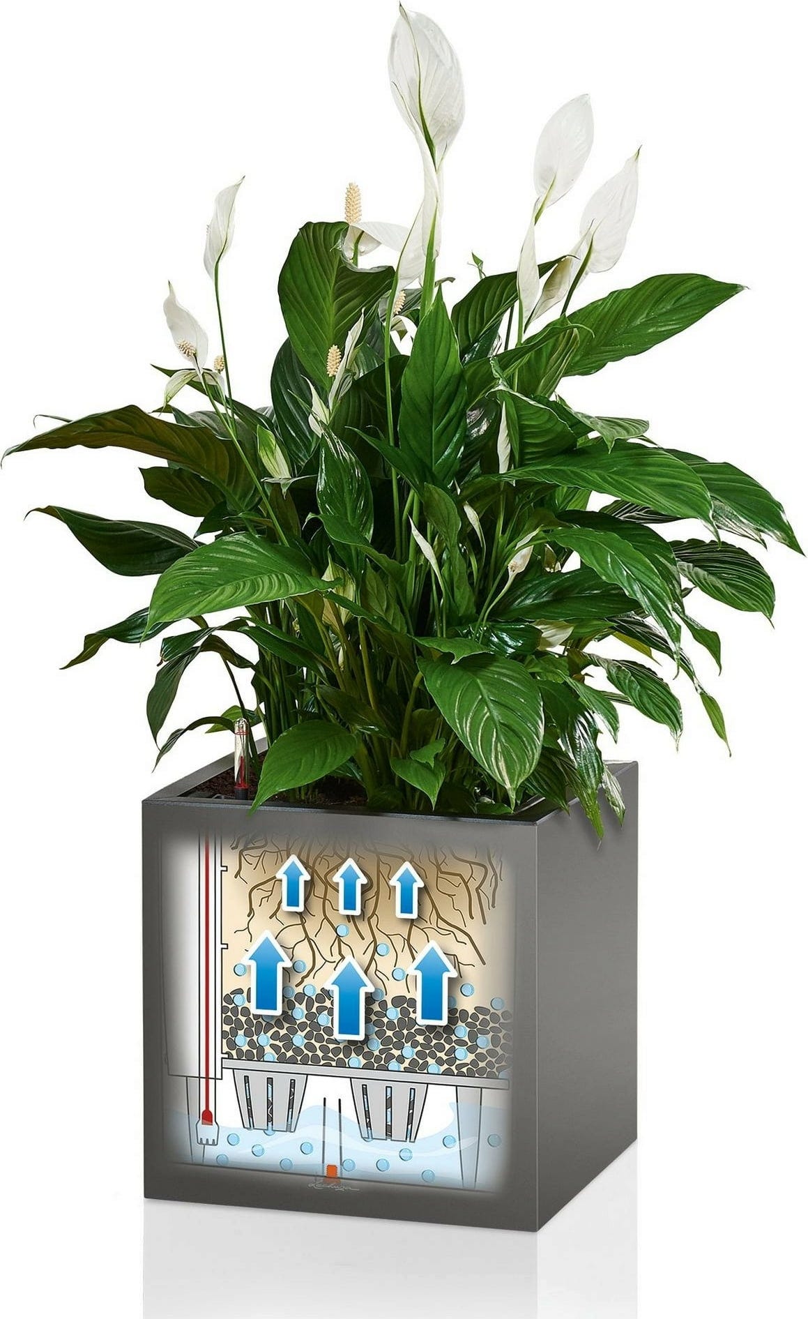 Sprytne życie wewnętrzne: Wymienna wkładka na rośliny z praktycznymi wpuszczanymi uchwytami i opatentowanym systemem nawadniania Lechuza nie tylko ułatwia zmianę roślin, ale także zapewnia wspaniałe i witalne rośliny.