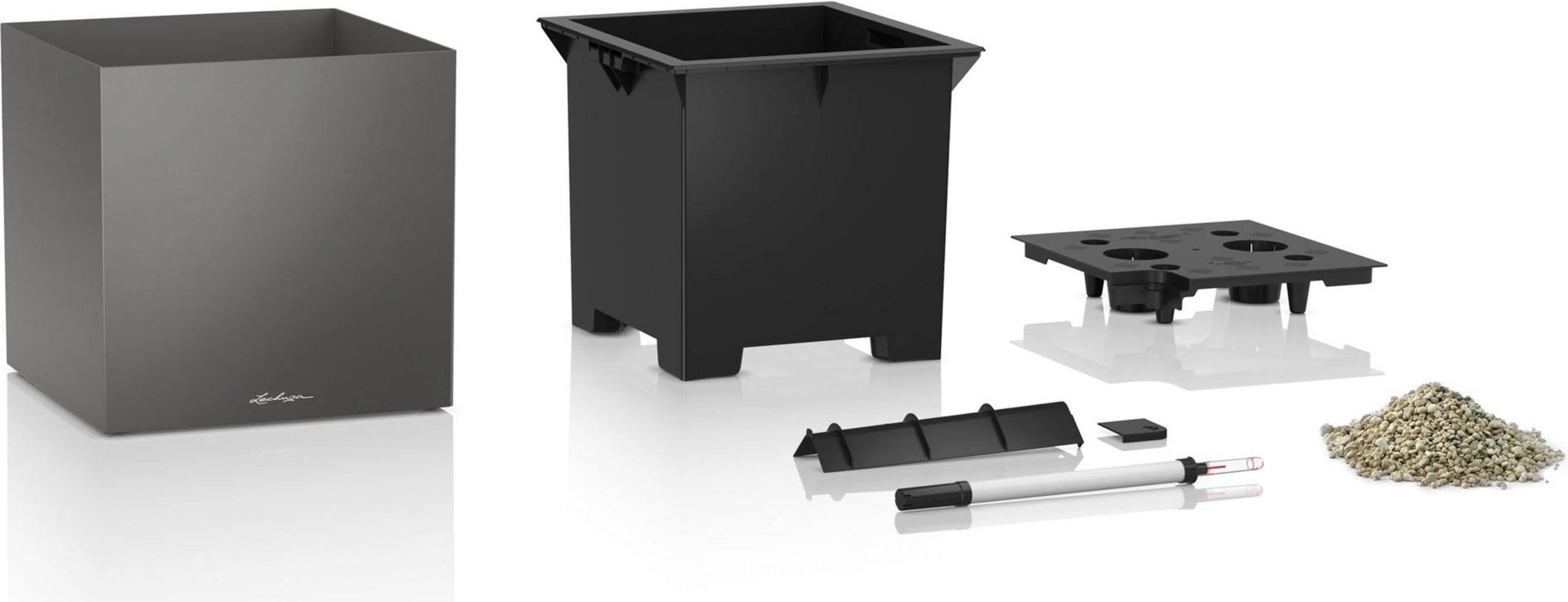 Prosty, nowoczesny design połączony ze stylowymi powierzchniami o wysokim połysku i metalicznymi: Oto CANTO PREMIUM od Lechuza. Praktyczny kompletny zestaw w formie sześcianu oferuje nie tylko dużą objętość sadzenia, ale także sprawia, że eleganckie donice są idealnym wyborem do salonów, biur i poczekalni.