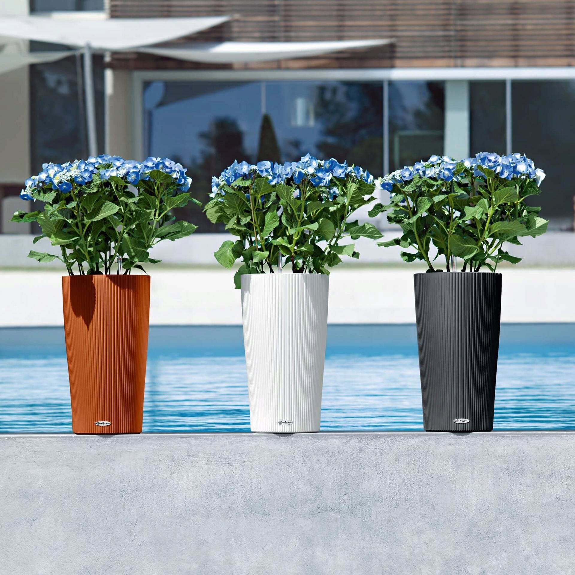 Cilindro idealnie nadaje się do tworzenia indywidualnych koncepcji pomieszczeń. Prosta elegancja, subtelna struktura linii, kształt i kolory skutecznie wyeksponują Twoje rośliny. Doniczka nie jest jednak tylko atrakcyjna wizualnie: dzięki sprawdzonemu systemowi nawadniania od dołu Cilindro zapewnia optymalny wzrost roślin. Rośliny zaopatrują się w wodę poprzez zbiornik wodny. Dzięki praktycznej funkcji przelewania, w pojemniku nie gromadzi się woda, nawet przy użytkowaniu na zewnątrz.