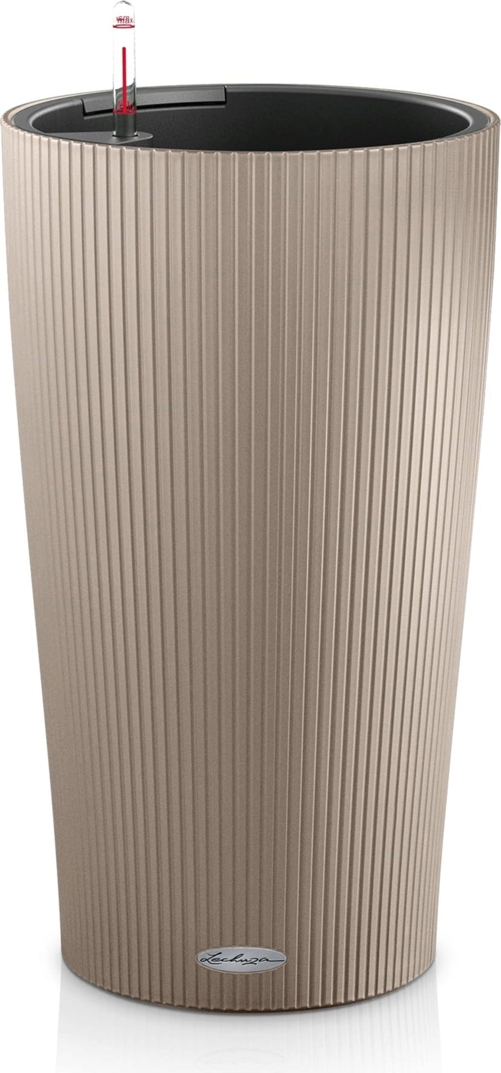 Cilindro to zestaw typu „All-in-One” zawierający doniczkę, wkładkę do roślin, wskaźnik poziomu wody i podłoże dla roślin.