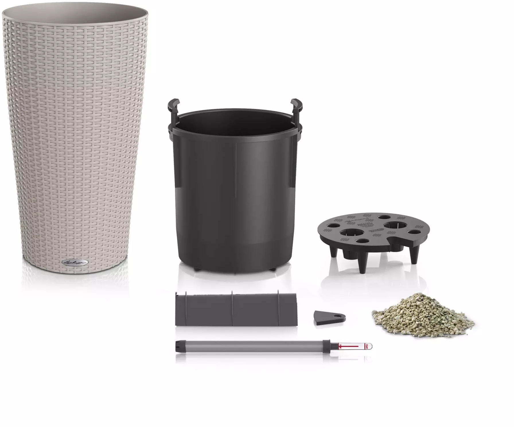 W zestawie: doniczka + wkładka na rośliny + zestaw do podlewania Lechuza