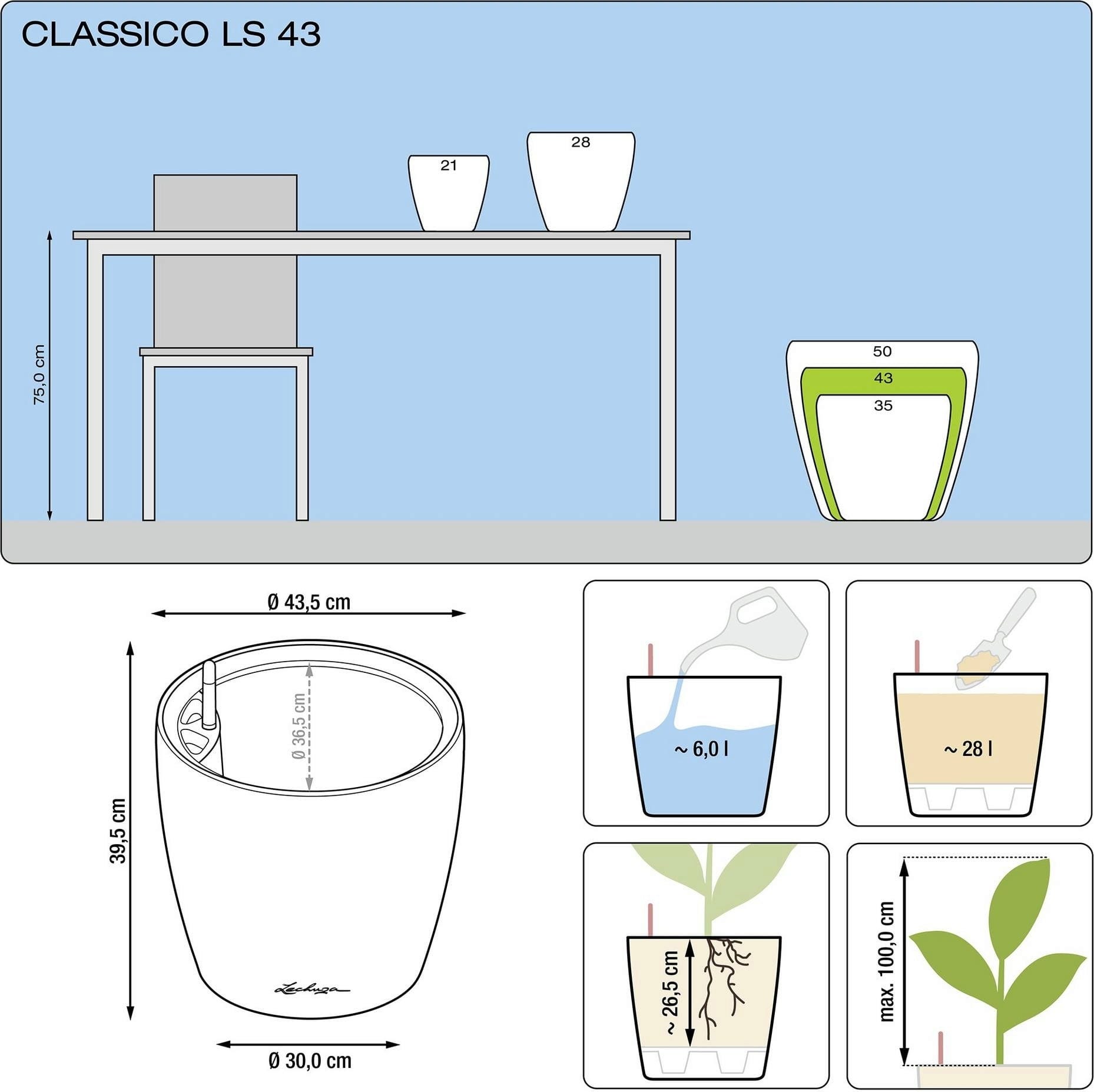 | Linie produktów Lechuza: | Classico |