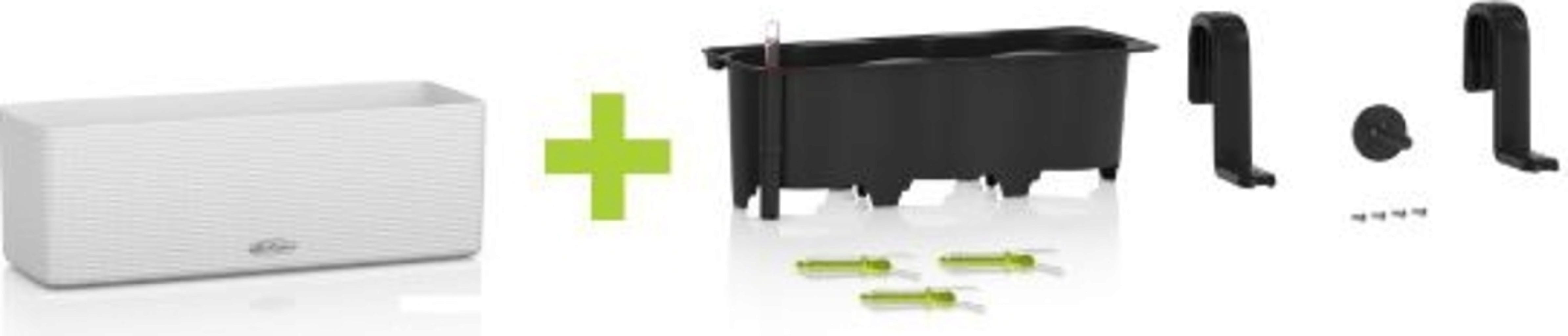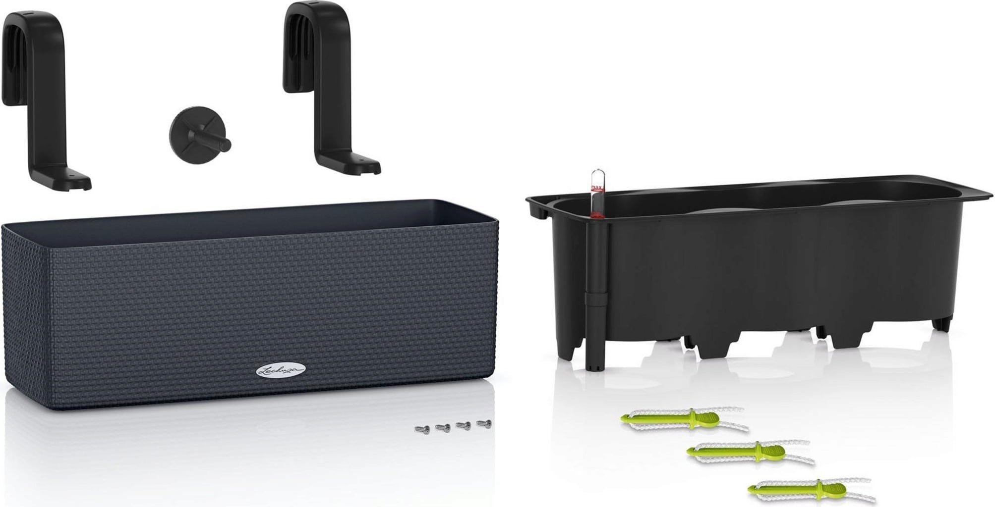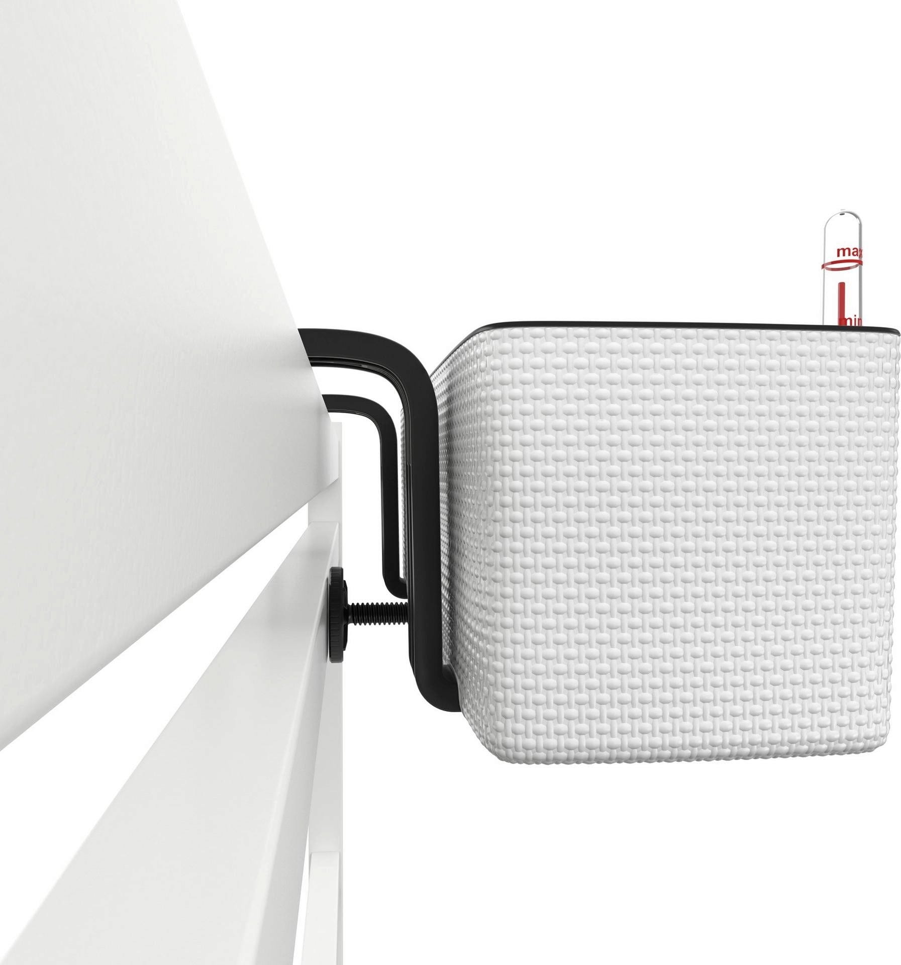 - W zestawie pasujące uchwyty do skrzynek balkonowych, odpowiednie dla balustrad o szerokości do 5 cm